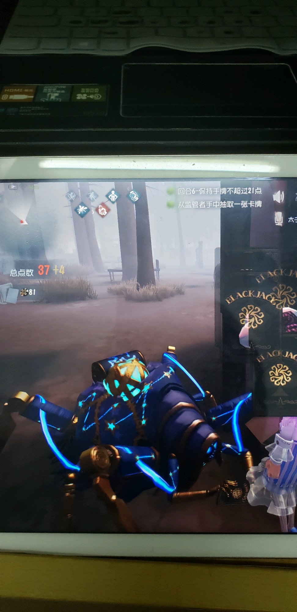 四十几,原因是我是第一个成二十一的,其他三个队友一人甩一张牌给我,然后被屠夫逮住再强塞一张