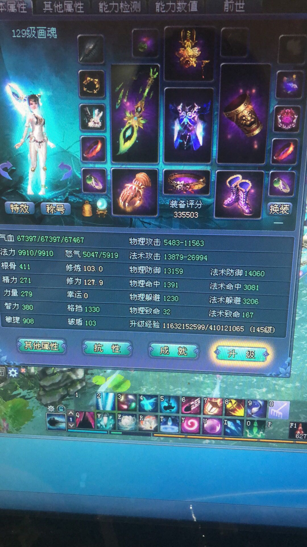 129画魂,1级肾,2个1级神兵,站街3200躲避,3100命中!双10附体,技能等级全10!出站10悟性,45w默契!