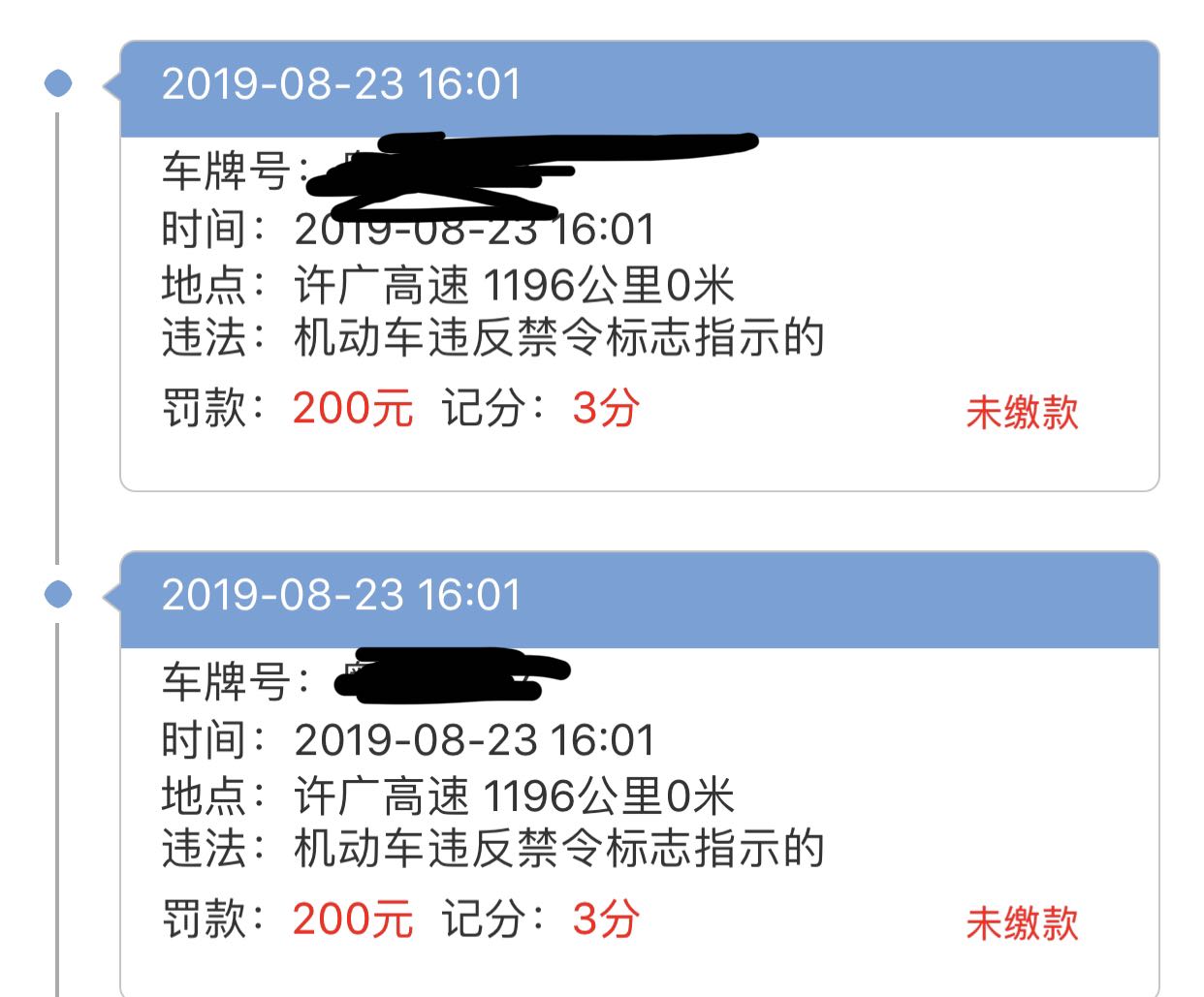 前两天开摩托车上高速被抓 现场开单200 3分 今天早上收到