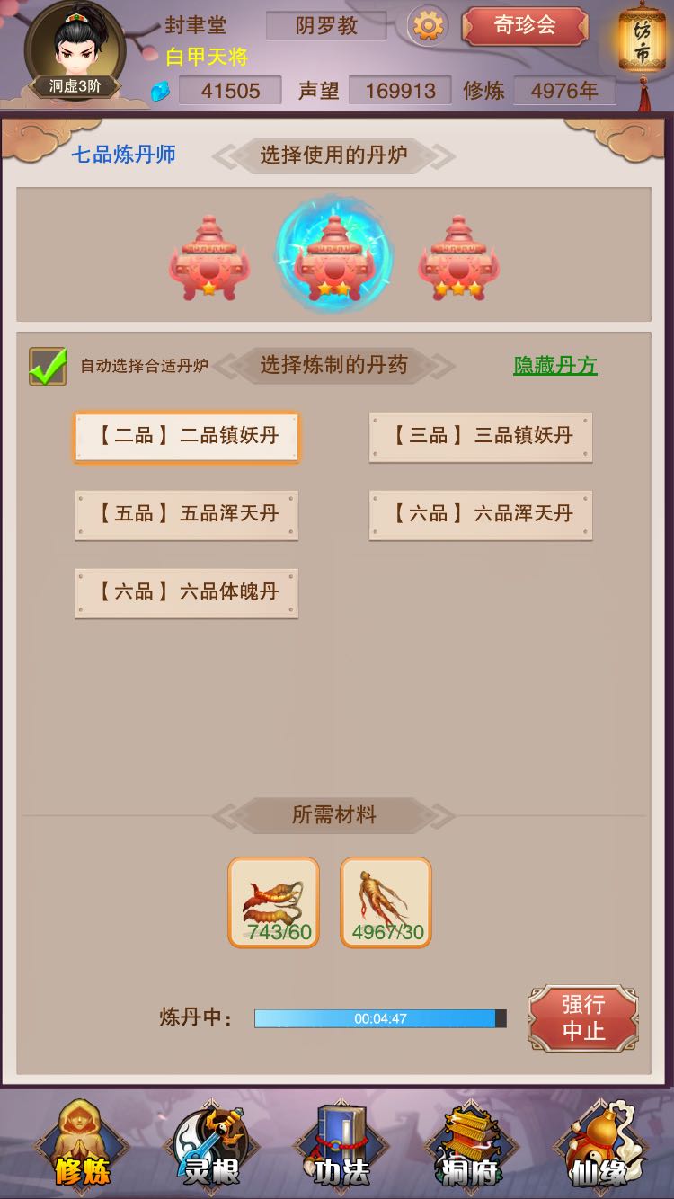 还有主要就是练养魂丹,那个简单能换就换,练丹除了药材不够,就不要让丹炉挺下来。