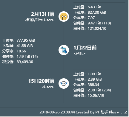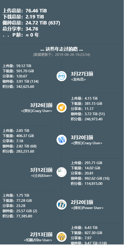 s,一台白群918+,一台星际矿渣,共30T硬盘,还有4个2T硬盘闲置,计划再买一台矿渣。数据最好的是我第一个站,有感情,在此站发布了些教程,刚好遇到此站开注和全站free和2x上传,数据一下就起来了,没有用过盒子,全靠本地30M上传,偶尔发布种子时会买个24小时100Mbps上行加快出种速度。