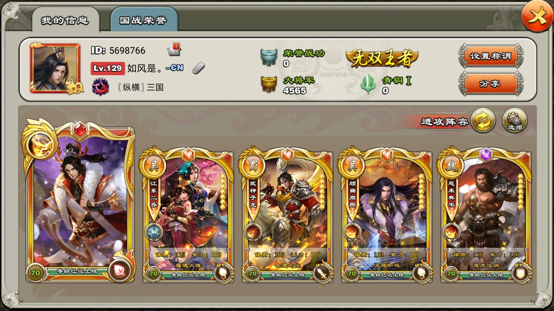 军情号这么多东西那得多少年啊 和我的差不多元宝6万多吉签500多5星6星一大把7星有几个金色宝物橙色宝物碎片300多各种加速300多将魂3万多好像 兵书5000多