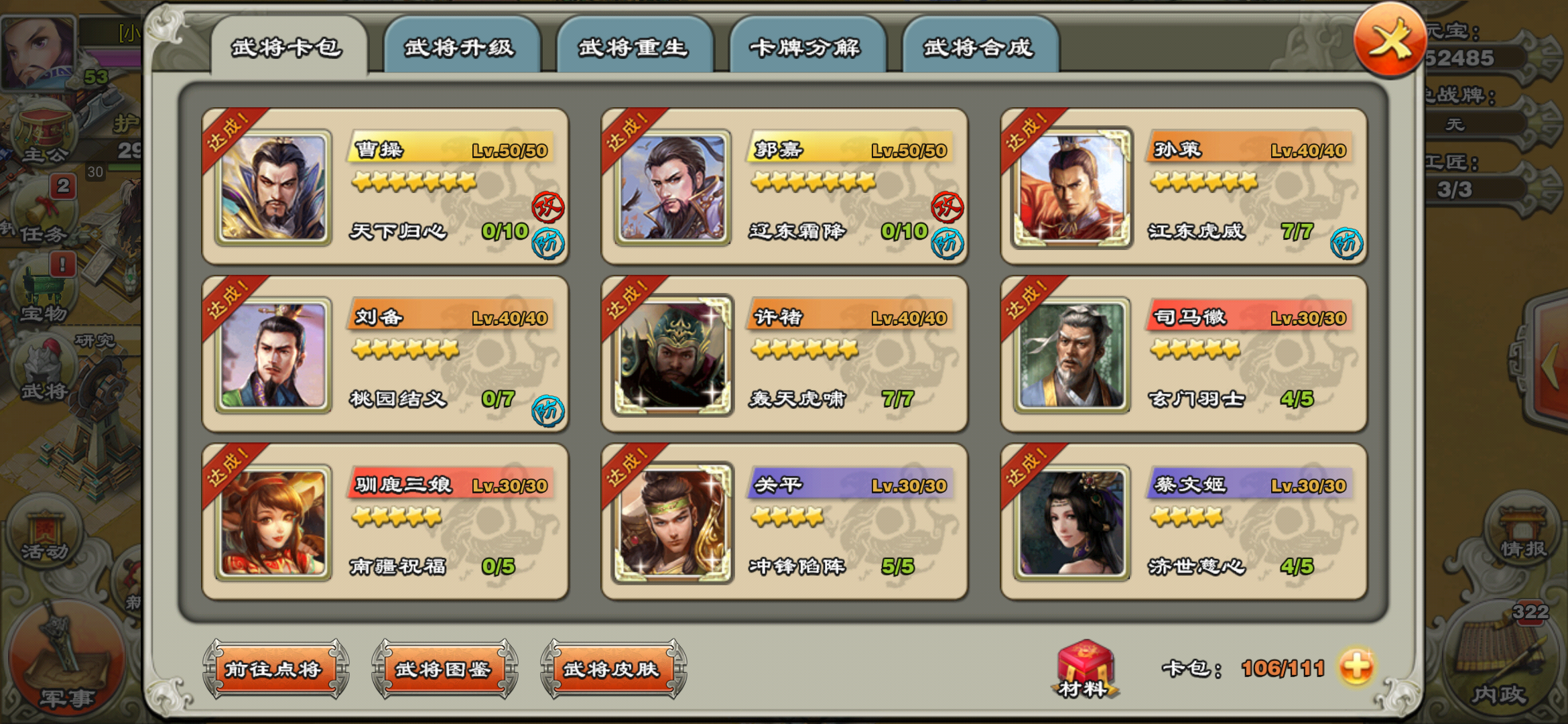 然后看你的充值力度,大的话无脑777,平时活动什么的都买了,小的话考虑下阵容,想跳还是推或者偷,可以先用跳墙过度下,低配版司马马超典韦加一个清边将