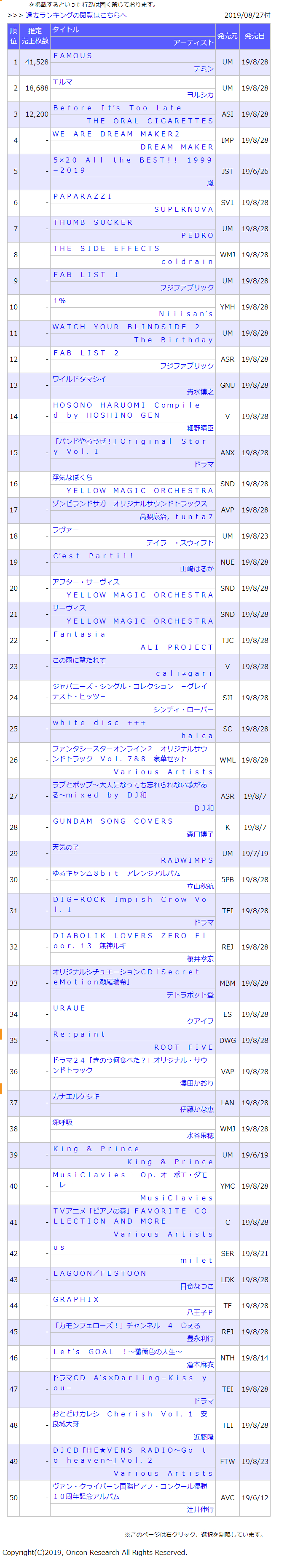【日榜单】2019/8/28