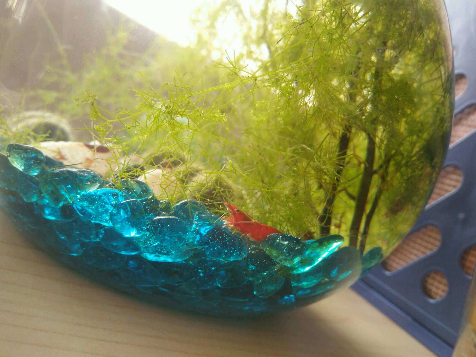 单位里那缸简直了。缸里5只极火虾,4只蜕皮,今天下午发现居然还生小虾了!!!!