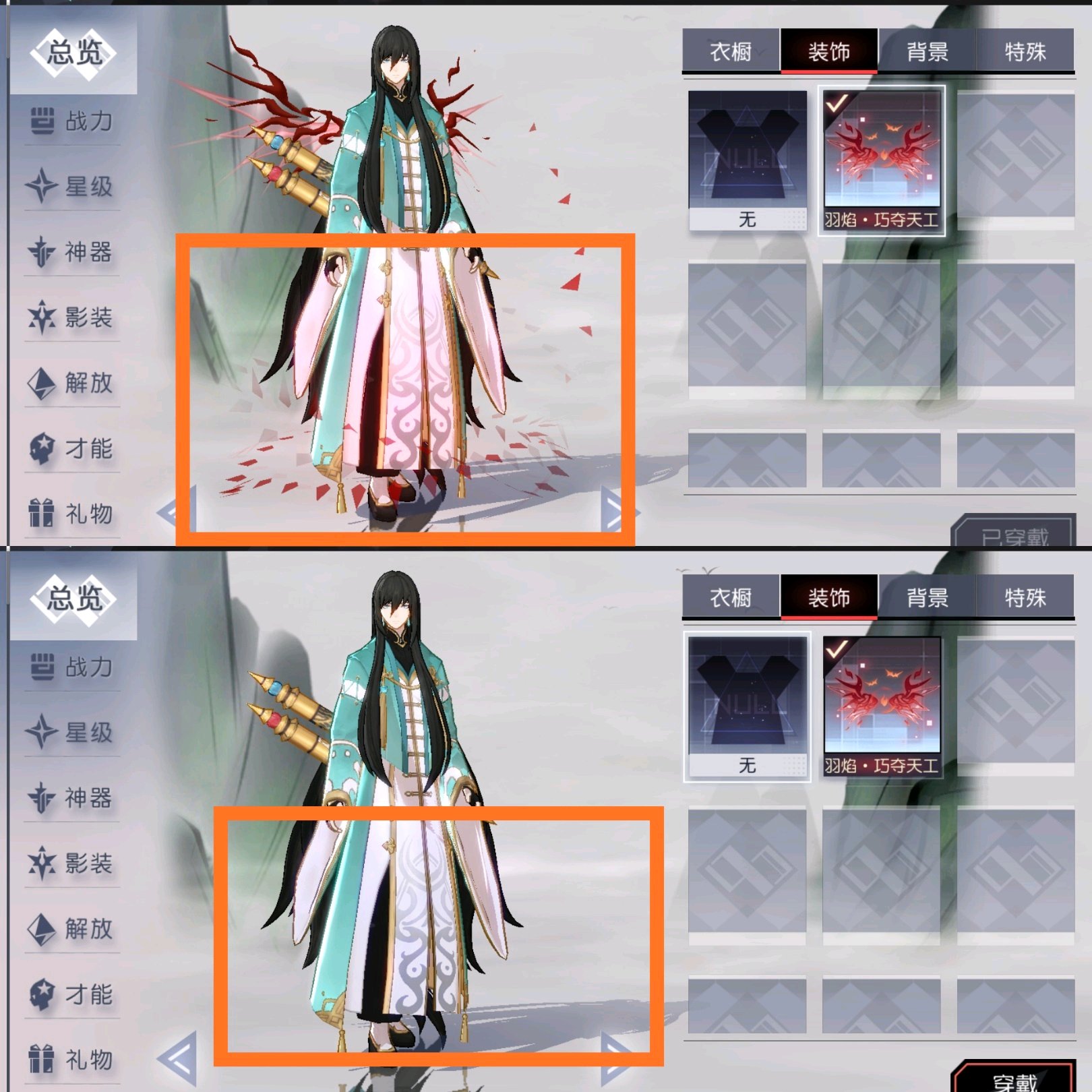 这个红翅膀还有光效,衣服会印成红色,令人头秃……