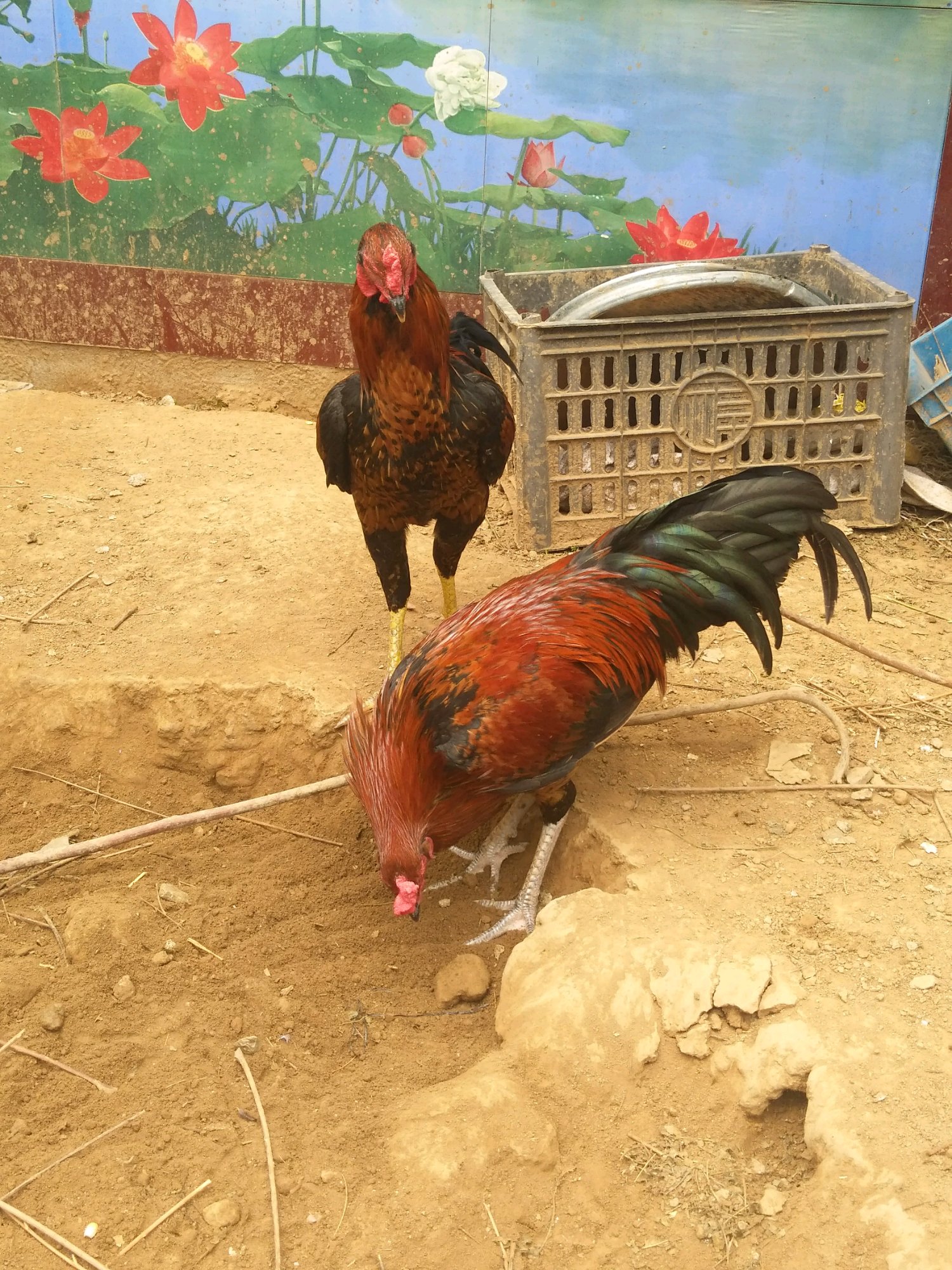 这是也是土鸡公鸡配的母斗鸡出的品挺高的,上次土鸡公配母斗鸡出的就有一个大冠,另外一个除了毛紧身斗鸡的冠看着就是土鸡了