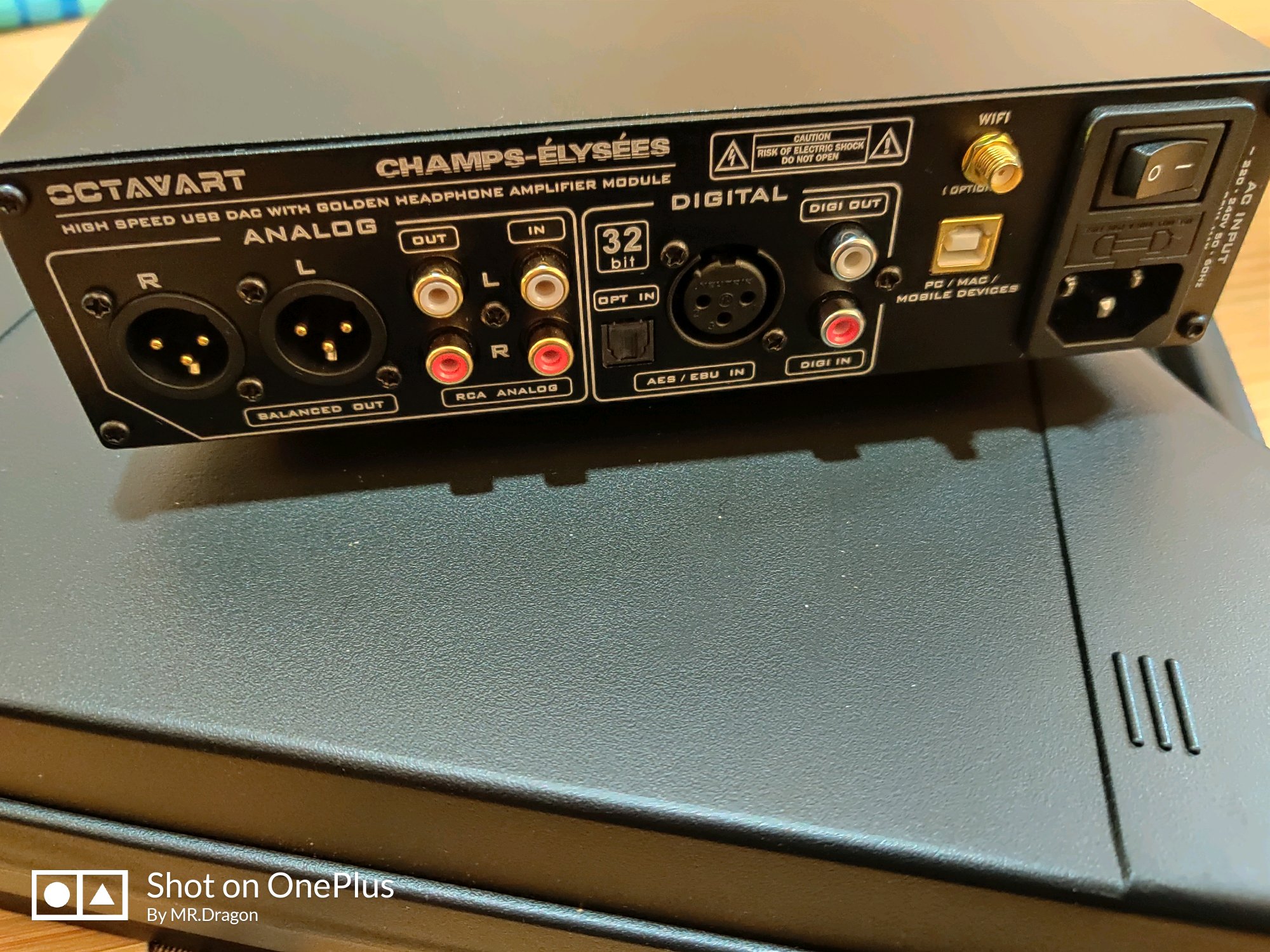 机器本身方方正正不难看,大小也适中。音量旋钮的阻尼感也还行,基本合格。不过触摸屏差点意思,手感有点差,反应也不是太灵敏,香榭丽舍功能齐全接口丰富,USB、AES、同轴、光纤、RCA输入输出、XLR输出,蓝牙天线,两个6.35口一个XLR平衡口;功能上解码、耳放、界面、前级一应俱全。声音上香榭丽舍走的是自然宽松耐听的风格,风格染色少、偏直白通透,能较为真实地反映音源水平,在推elear下,高频的表现是稍微有一些暗,人声中频十分有特点、整体音色比较暖声。人声缓缓的唱,歌手的情感表达十分到位,有种胆机的味道,低频有弹性 。整体来说,这个价位香榭丽舍性价比很高。