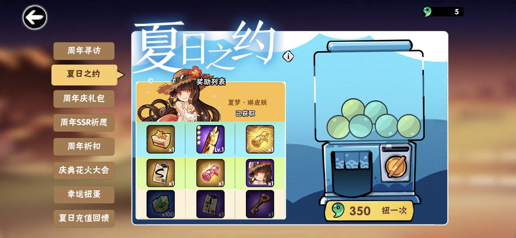 当了一把巨托,本来不相信托的存在。抽这个250之前还思考了半天,因为想要ss图卷或者4星咸鱼,在想如果出蛋糕和悬赏也不亏,最亏的就是s图卷……想都没想过会直接给皮肤,然而,我真的不玩琳