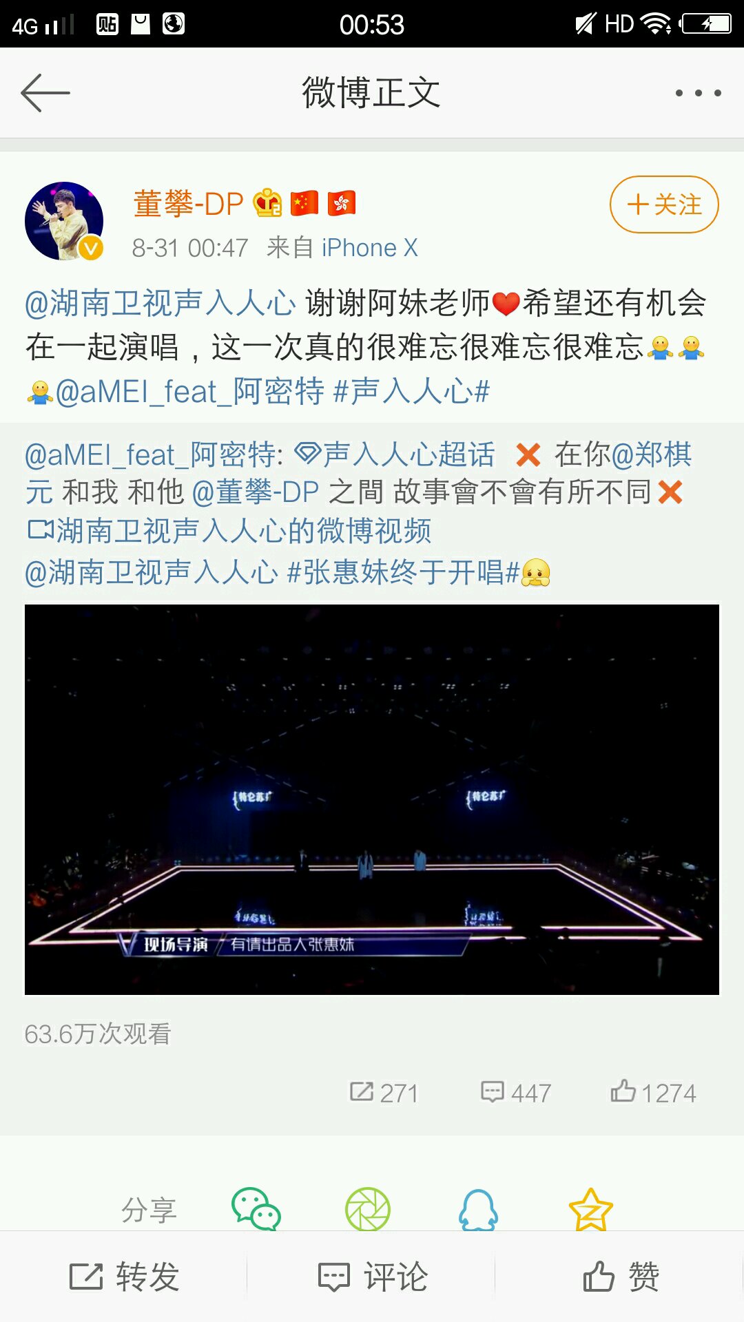 洪涛特意来看阿妹唱现场。又要跪求强求妹神了。这孜孜不倦的爱,是出于,对一个真正歌者的尊重与热爱。跟世俗的嘈杂无关。