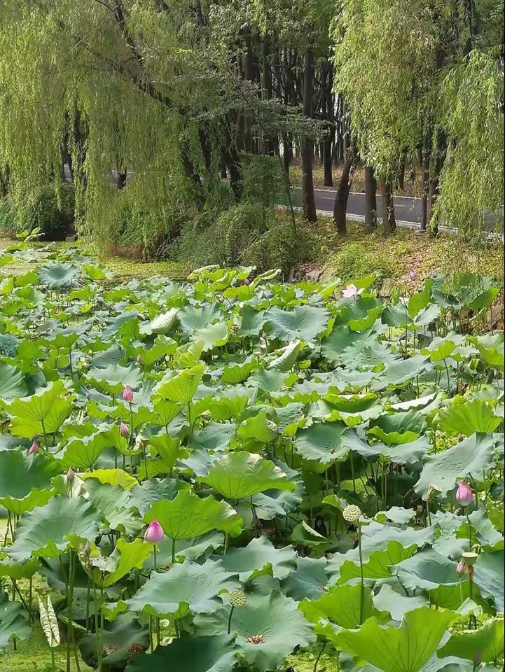 有莲花就有采莲人,贺知章曾作《采莲曲》道“稽山罢雾郁嵯峨,镜水无风也自波。 莫言春度芳菲尽,别有中流采芰荷。”而越女的美貌也是自古天下闻名,李白杜甫这样的诗仙诗圣都曾吟咏过“越女天下白,镜湖五月凉”(唐杜甫)“镜湖水如月,耶溪女似雪”(唐 李白)作为鉴湖最大的水源——耶溪,经常被用来指代鉴湖。“越女红裙娇石榴,双双荡桨在中流。憨妆又怕旁人笑,一柄荷花遮满头。”(明 徐渭), “汀月生眉黛,溪梅试额妆。幽闺元不出,莫道嫁彭郎。”(宋 陆游)难怪赵匡胤会对贺皇后一往情深,诗礼传家的大家闺秀再有这“耶溪女似雪”的容颜,想不怜爱都难。如今的鉴湖已经没有娇媚动人,灵动活泼的越女身影,只有几处莲花依旧盛放,很遗憾,我们去的时候,莲花已经开得差不多了,只剩接天的莲叶与少数还在绽放的粉红花儿。