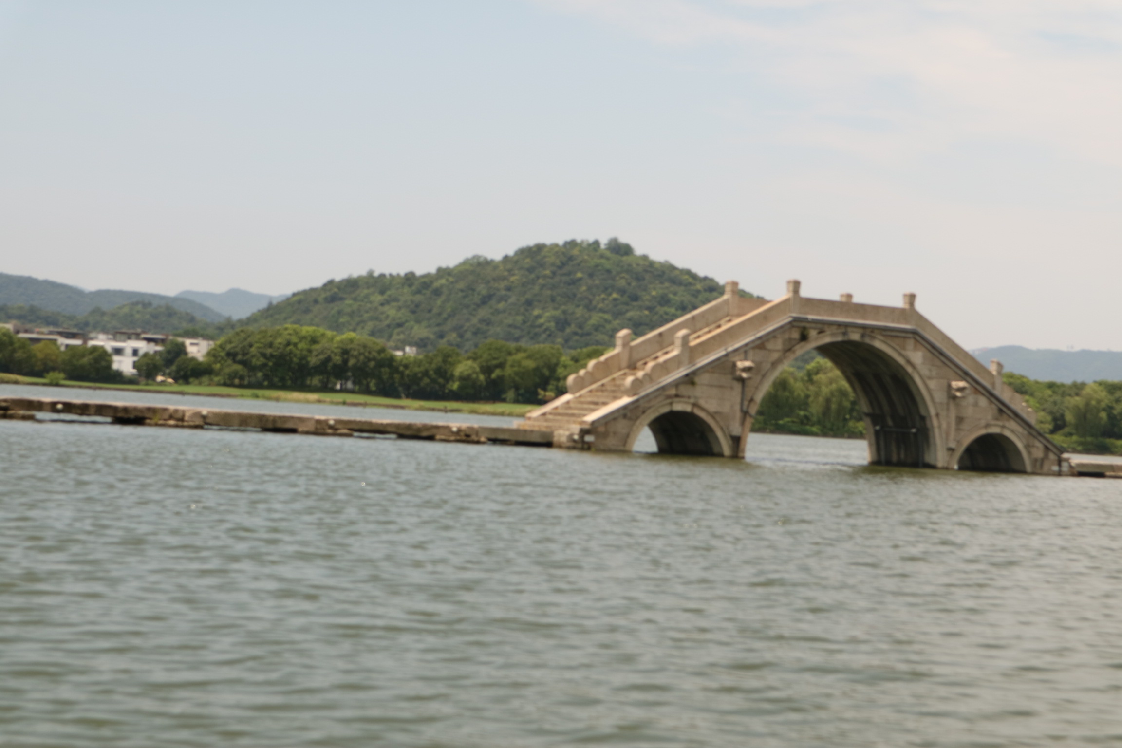 长堤中间由石桥连接,石桥特别高,阶梯密集,更显得陡峭,站在桥顶端不大敢往下面看(隐性恐高症???)