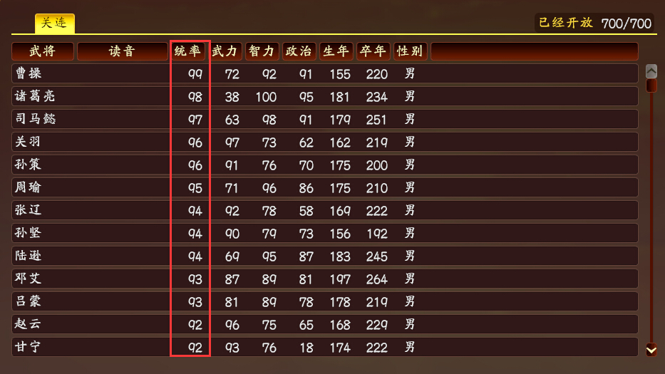 因为三国志有前后剧本,武将数据是可以成长,哪怕没有故意花资源和操作培养,带兵打仗会自动上涨统帅。为了保证年纪大的武将和年纪小一样有竞争力,同水准的武将年纪小出场晚的能力值会下调一点。