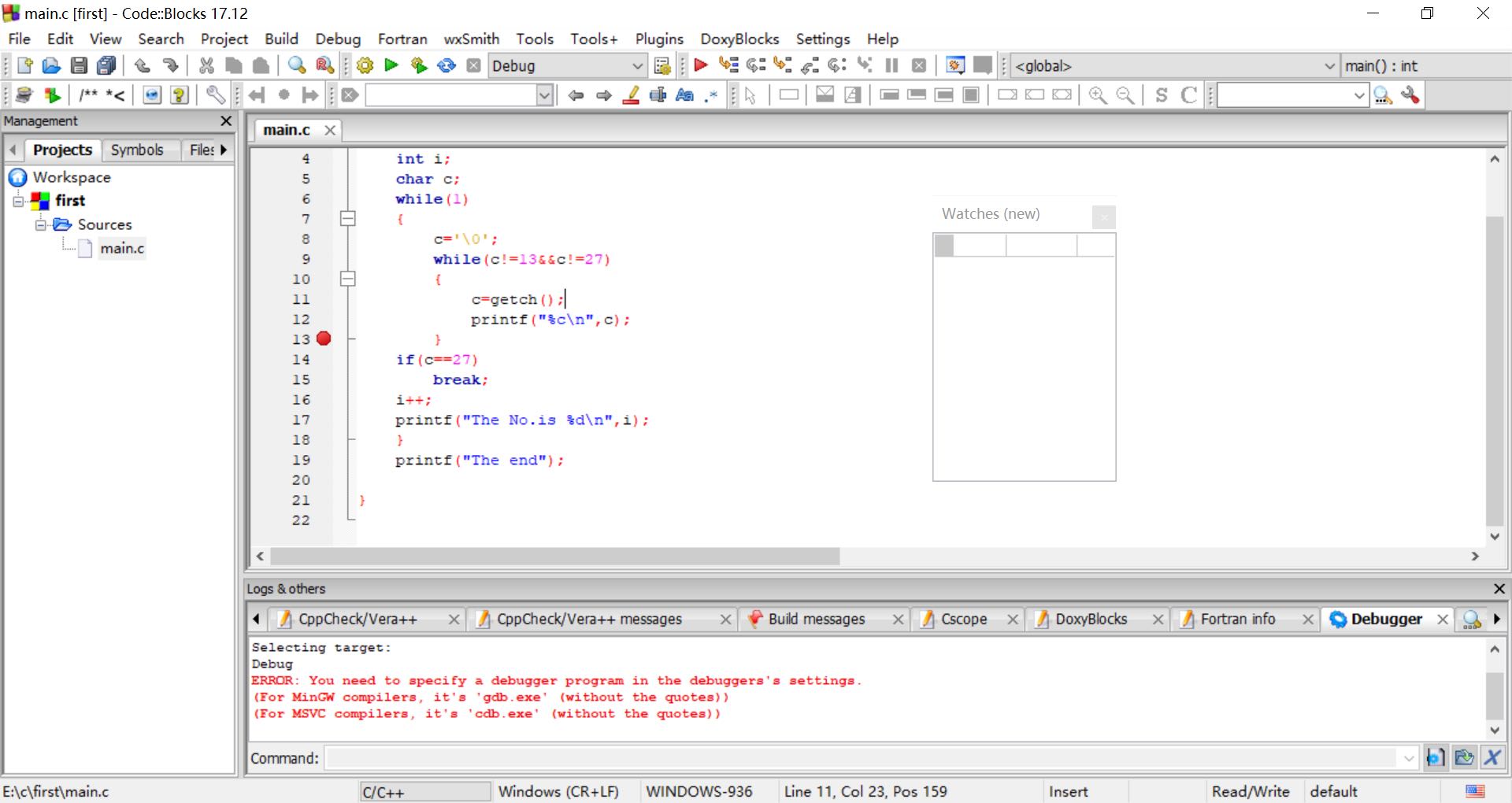 没有配置调试的程序。