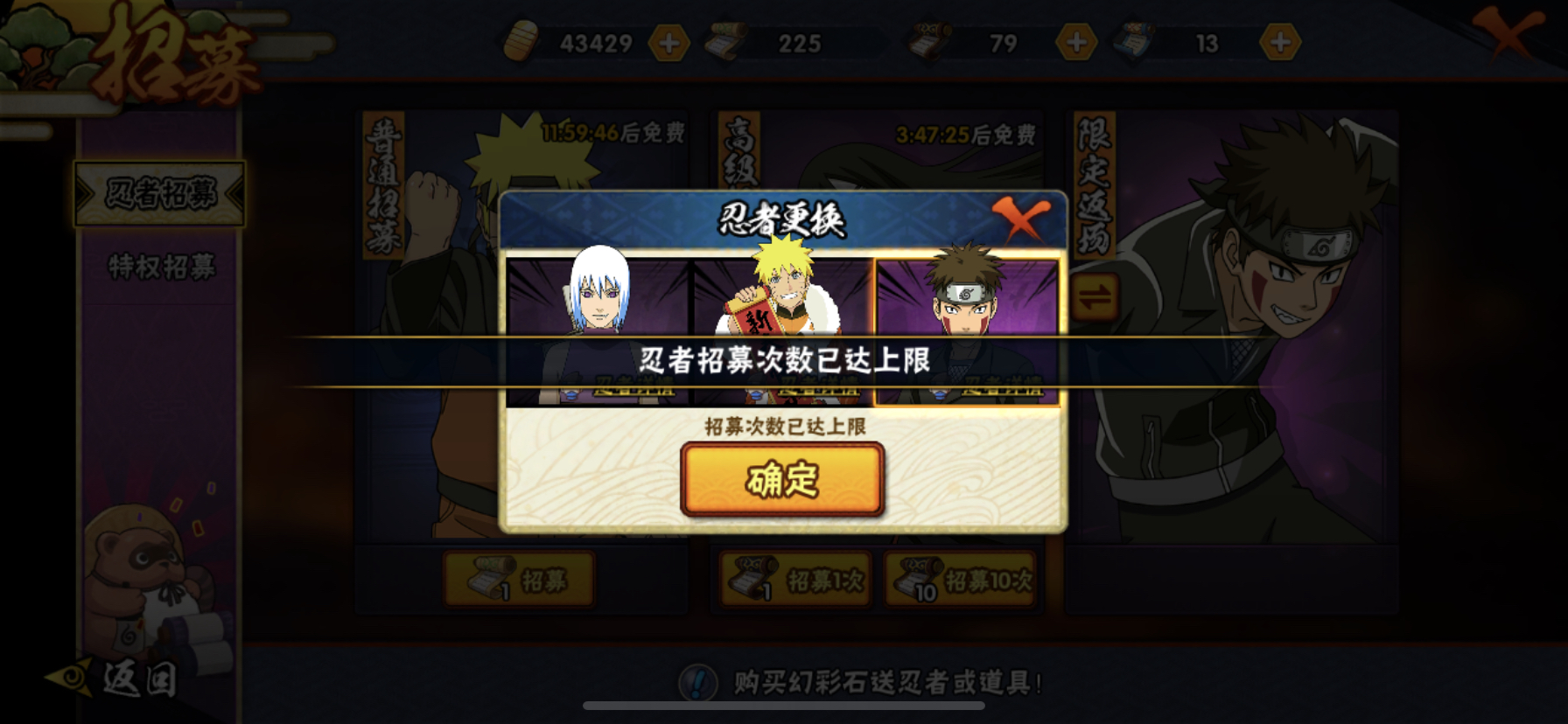 能不能把每月限制两个限定招募次数解除?三个忍者我都没有,想全招募,但就是次数已达上限。这是出于什么理由要这样限制?