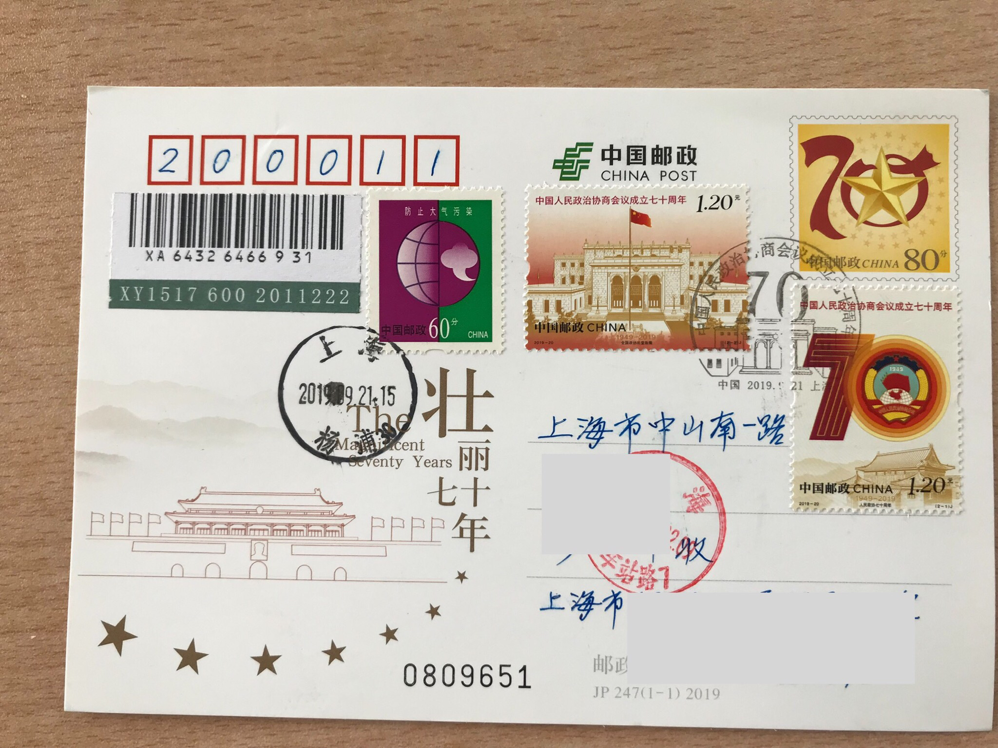 2019实寄之路-9月