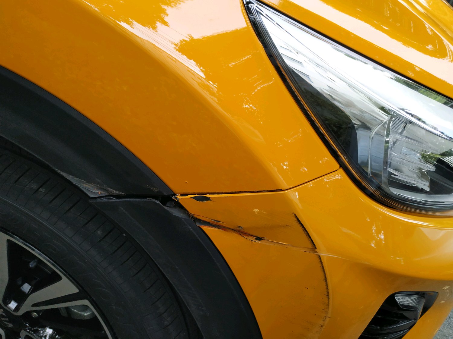 前保险杠更换,轮眉更换x2,前保,右前叶油漆,拆装工时。建议车主走保险,费用很高的,去外面修2000肯定要的