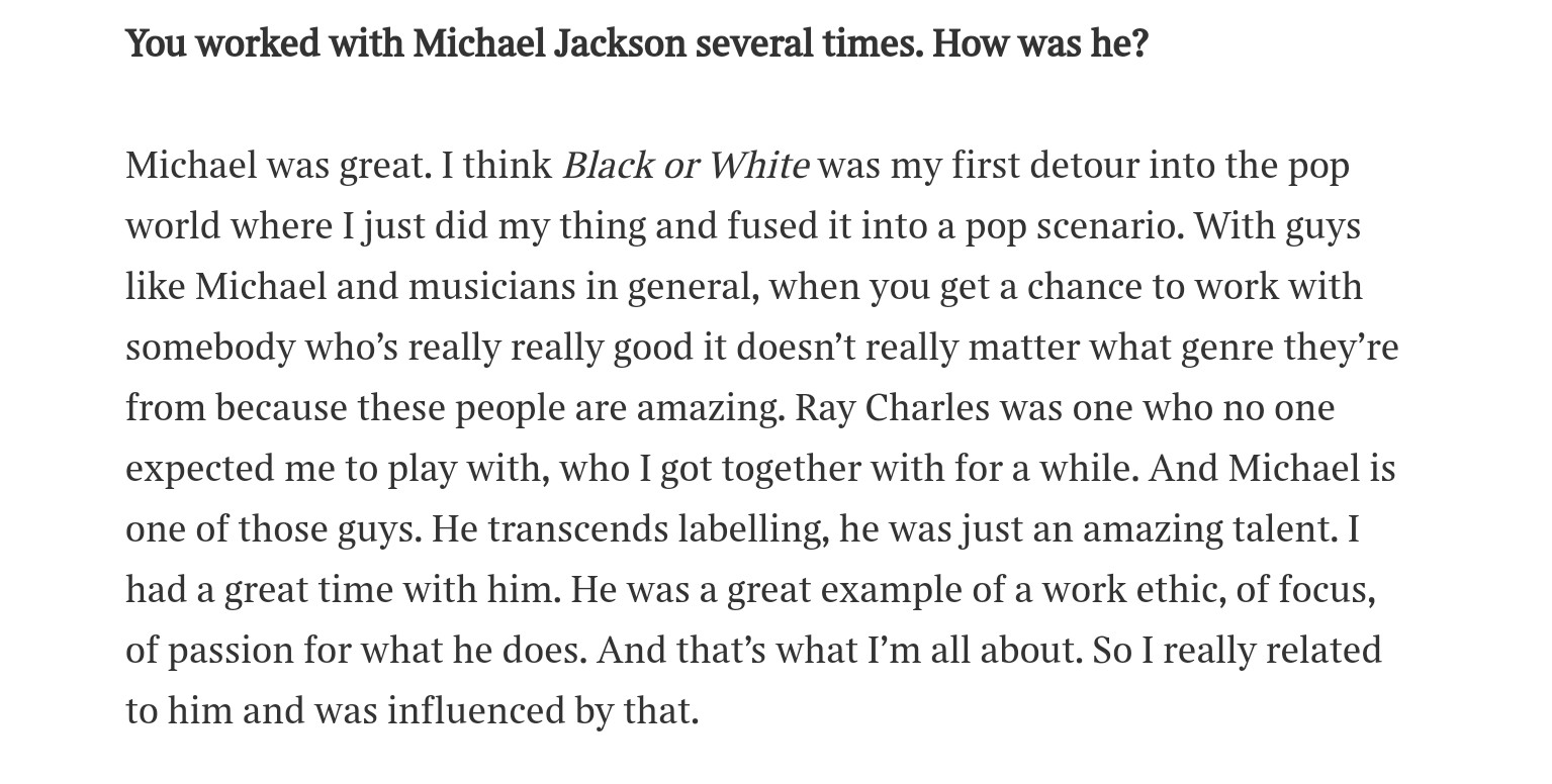 他享受并珍惜每一次在舞台上如此互动的瞬间,因为他能真切地感受到,尽管这个叫做Michael Jackson的人和自己有太多不同,但他身上又偏偏有着和自己同样的激情与能量--那种感觉很难定义,或是气场相投,或是惺惺相惜,或者随便怎么形容--而他对这样的“相同”感到兴奋。