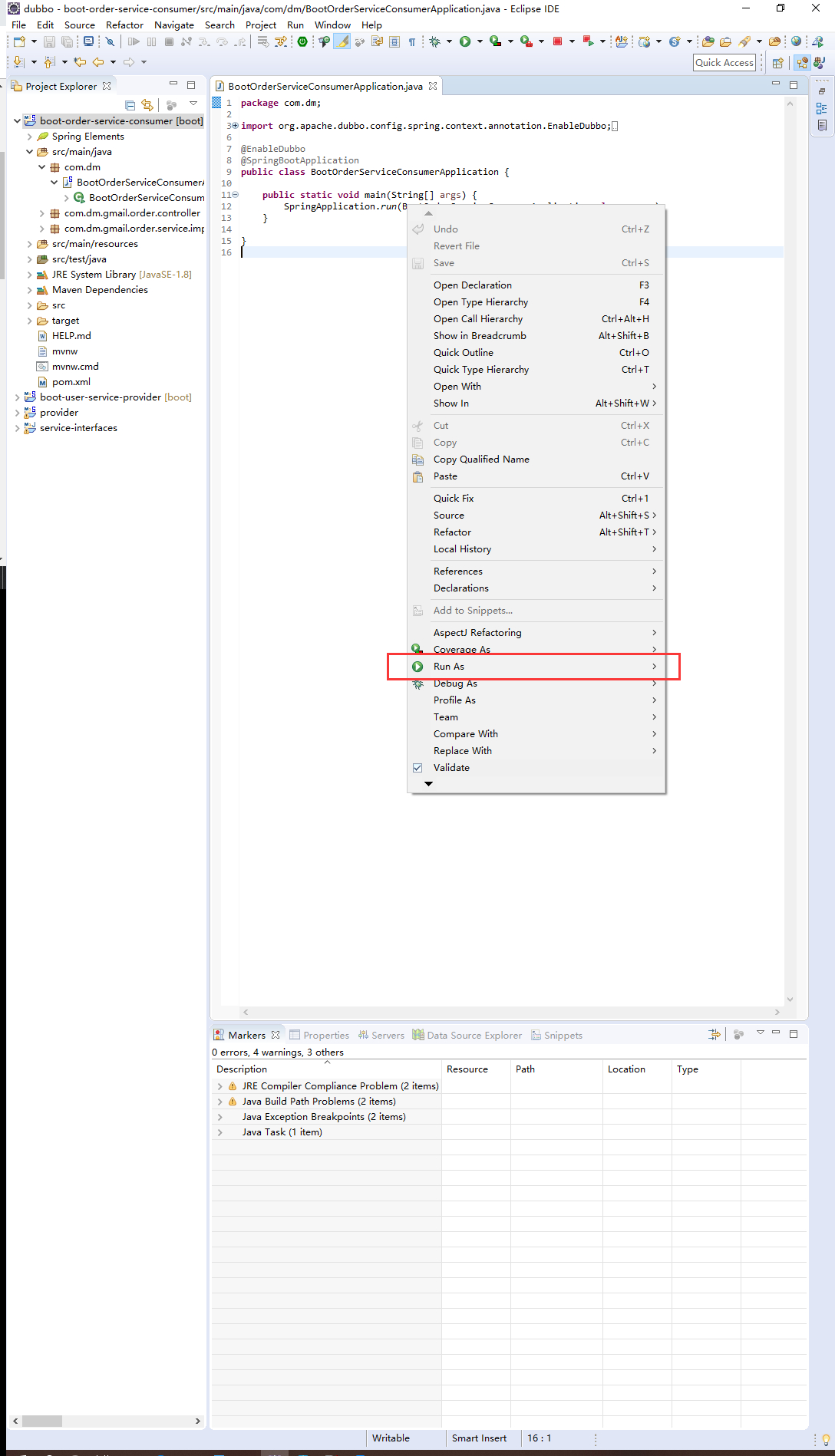 Java类中右键,将鼠标移动到run as时,右键菜单就关闭了