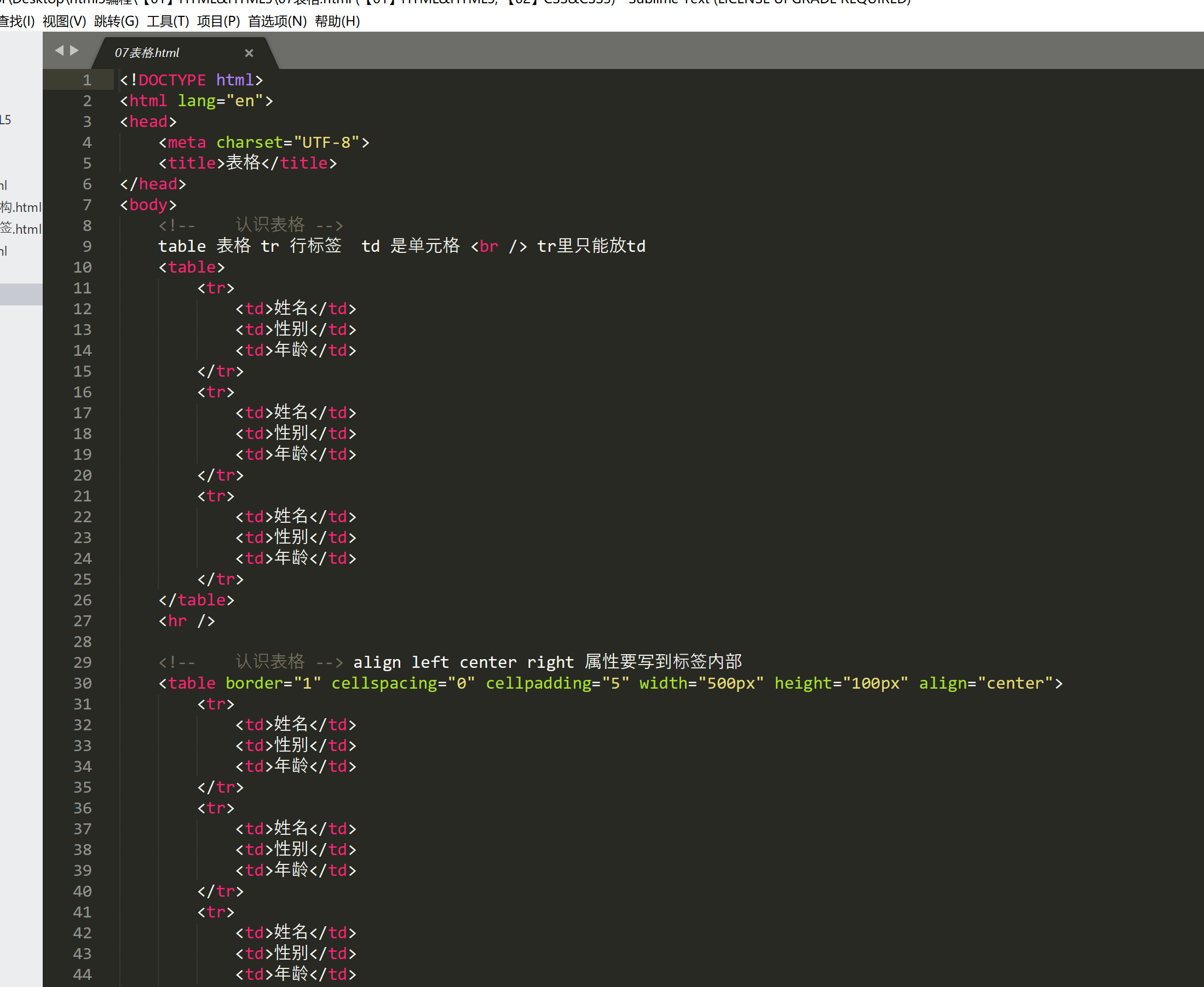 html&html 结构学习完毕