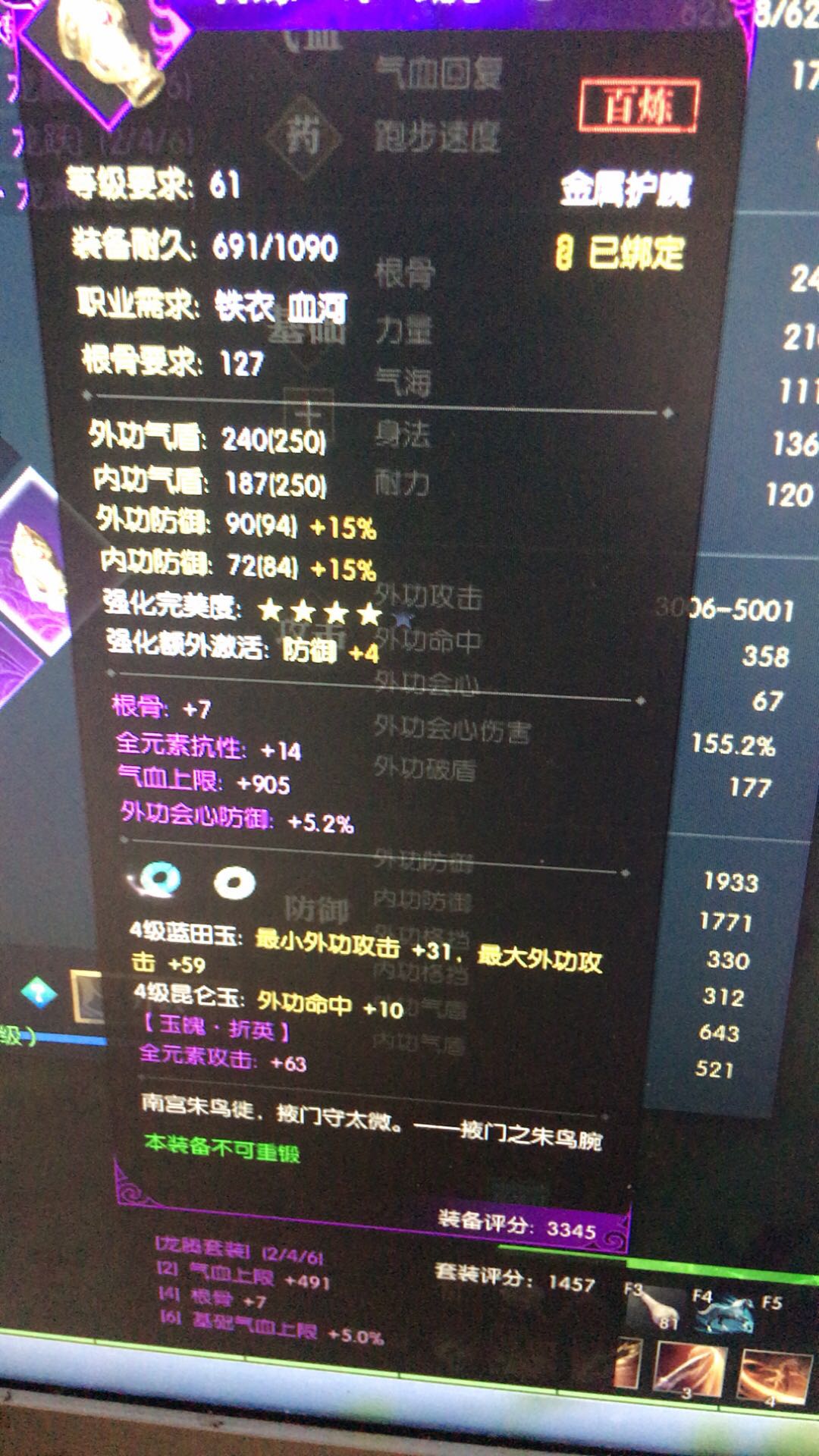 正好打消了我打算一键重铸三血一耐,然后升级,可惜又犹豫不能重铸就没顶着百炼一件重铸,修复了也满足了