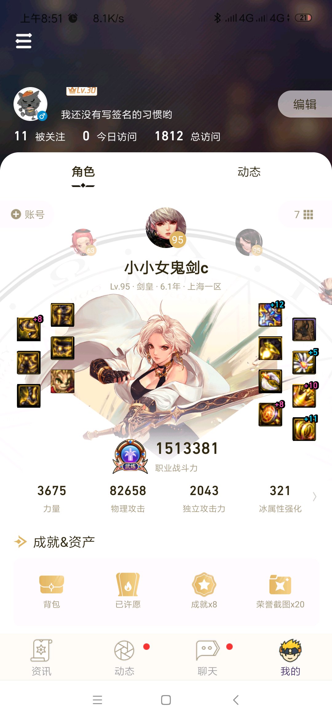 这是全身11,耳环白12的面板了,修炼场又破纪录了!!!