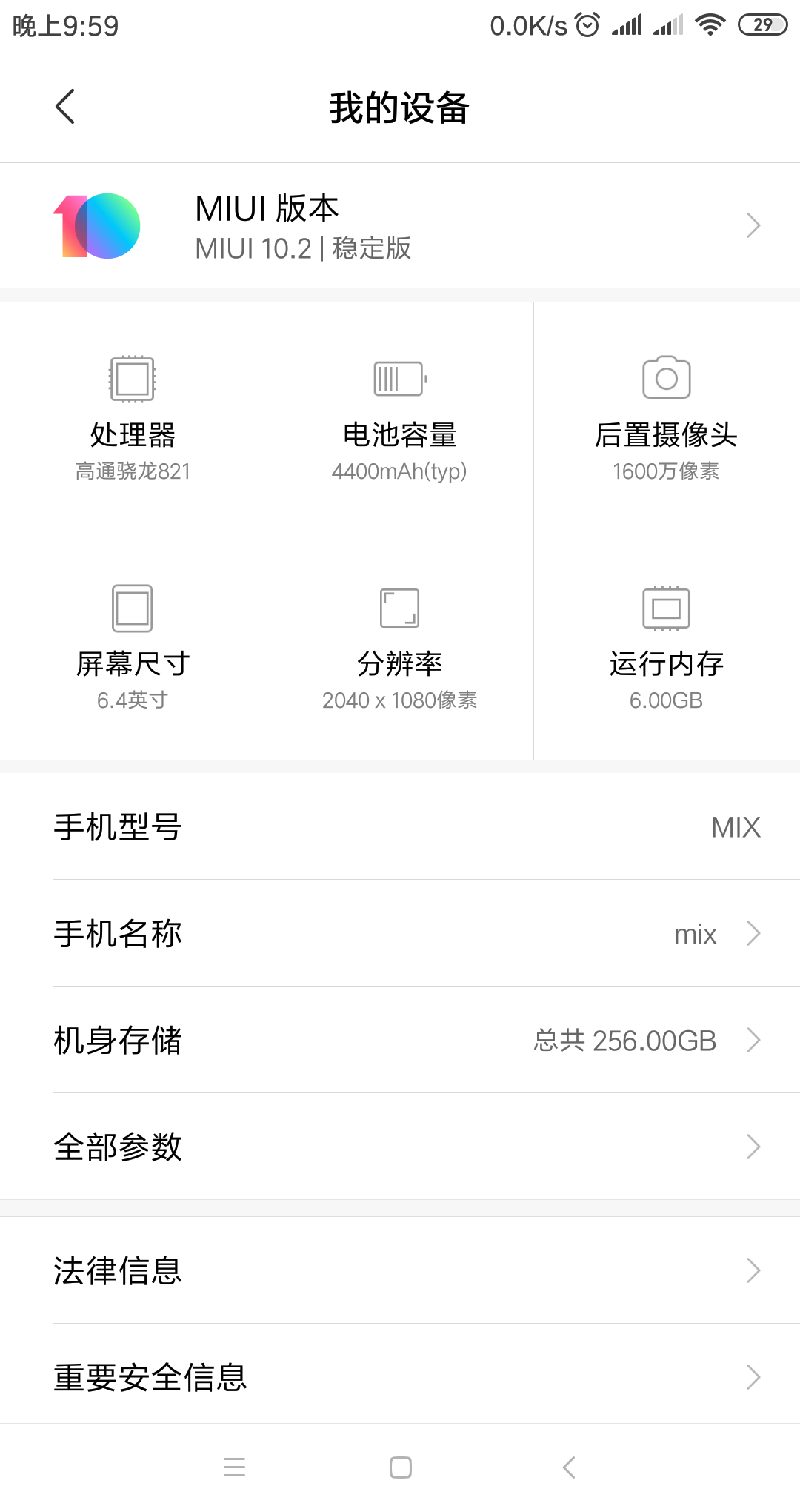 两年的mix 可以退休了 我要把256g全部存上步兵