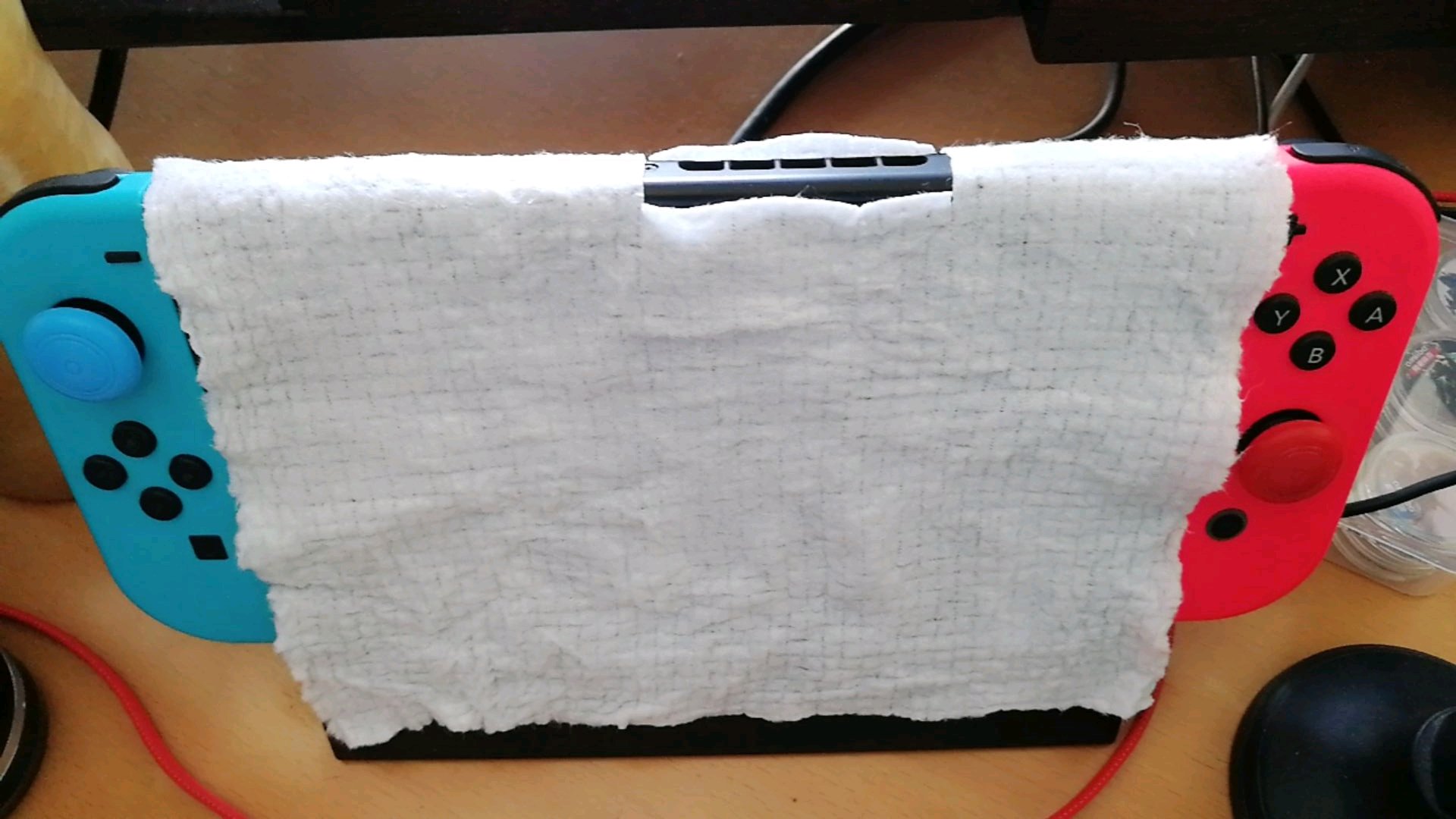 ,客厅开一整天空调电费还是有点心痛,这个天气人虽然不热但ns还是很烫。昨天拿老婆洗脸用剩的湿巾效果真不错,重新打湿铺在上面。