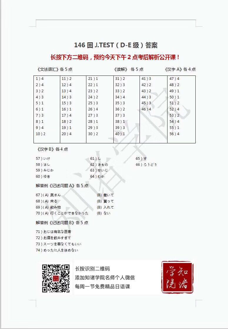 有人有146回DE的答案吗 求 谢谢🙏