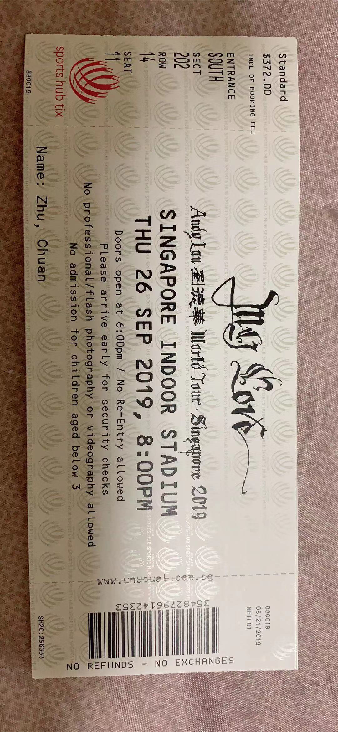 【爱华】出一张9.26新加坡演唱会VIP门票!