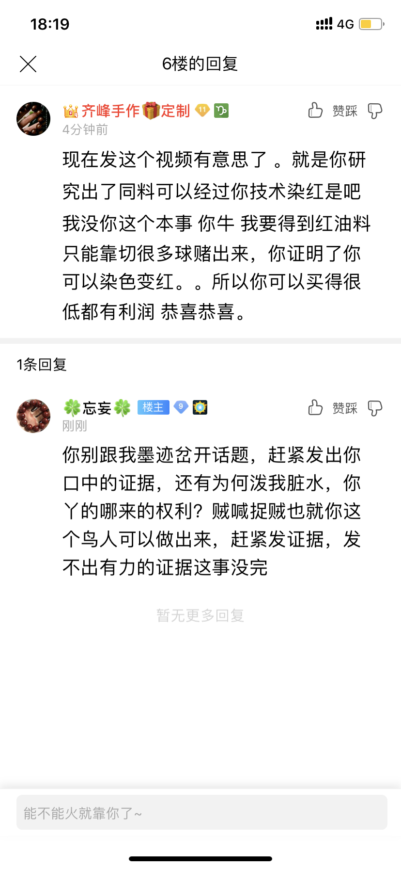 那恶心人骗我朋友被我曝光了,然后被很多人质疑后,他就跟他的托,在他的群里泼我脏水,说我才是无良黑心商家,并且说一堆鬼话,以此混搅视听,而且他也有托,就说被我骗过,来抹黑我,他还口口声声说有证据,我说你拿出来啊,他还一直不理我也不发话😂头一次遇见这样恶心的玩意