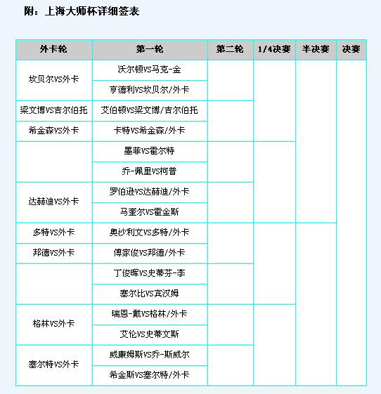 【Dott】上海大师赛正赛签表(转自塞吧)
