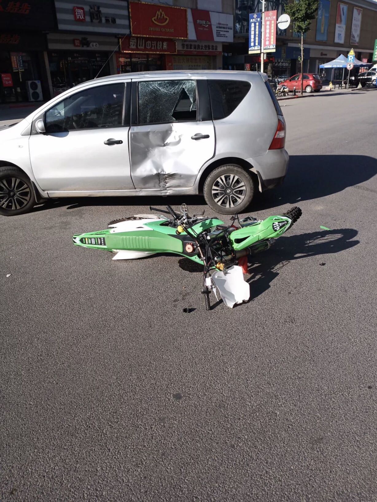你以为你开的飞机?骑个车不知道怎么得瑟好了,左晃右晃、这下闯祸了吧