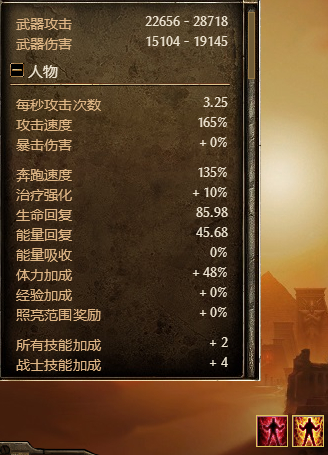 属性点;体格20。灵巧80。精神7。