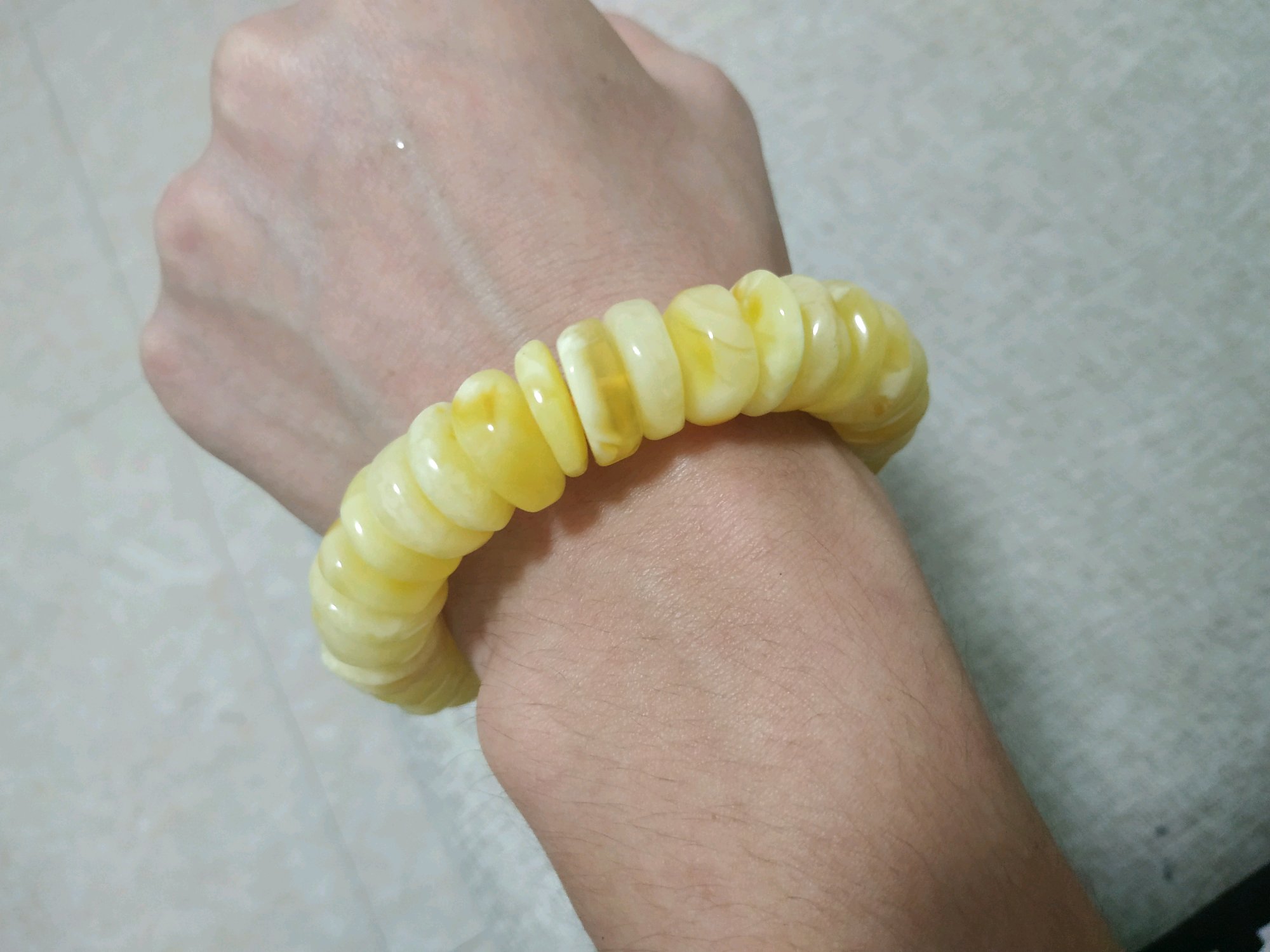 不建议,有点娘,手表、金刚、星月、绿松、核桃、木头等,随便挑个也比蜜蜡好,至少身边朋友手上没有玩这个的