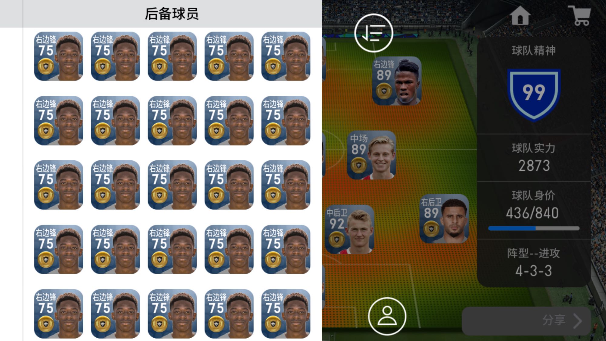 我男朋友说这游戏不花钱,他把之前的帖子都删了,不让我看,我不玩我还不会问么,他跟我说金色的是最好的,这18个金硬币是最猛的,后备球员都是辣鸡上不了场,我把他所有球员都发出来,你们帮我看看他到底花了多少钱,谢谢