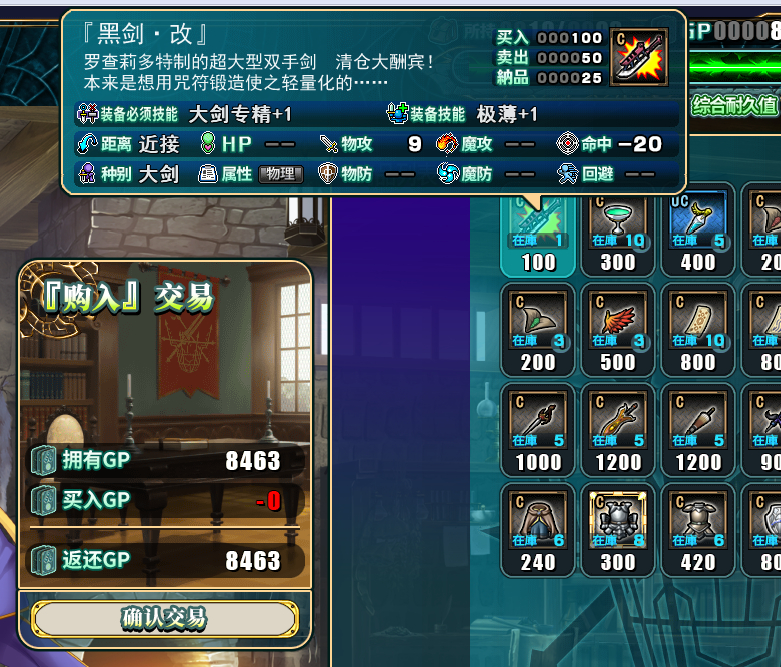 探索完,因为有5个以上的魔王石,所以黑E的商店开启。