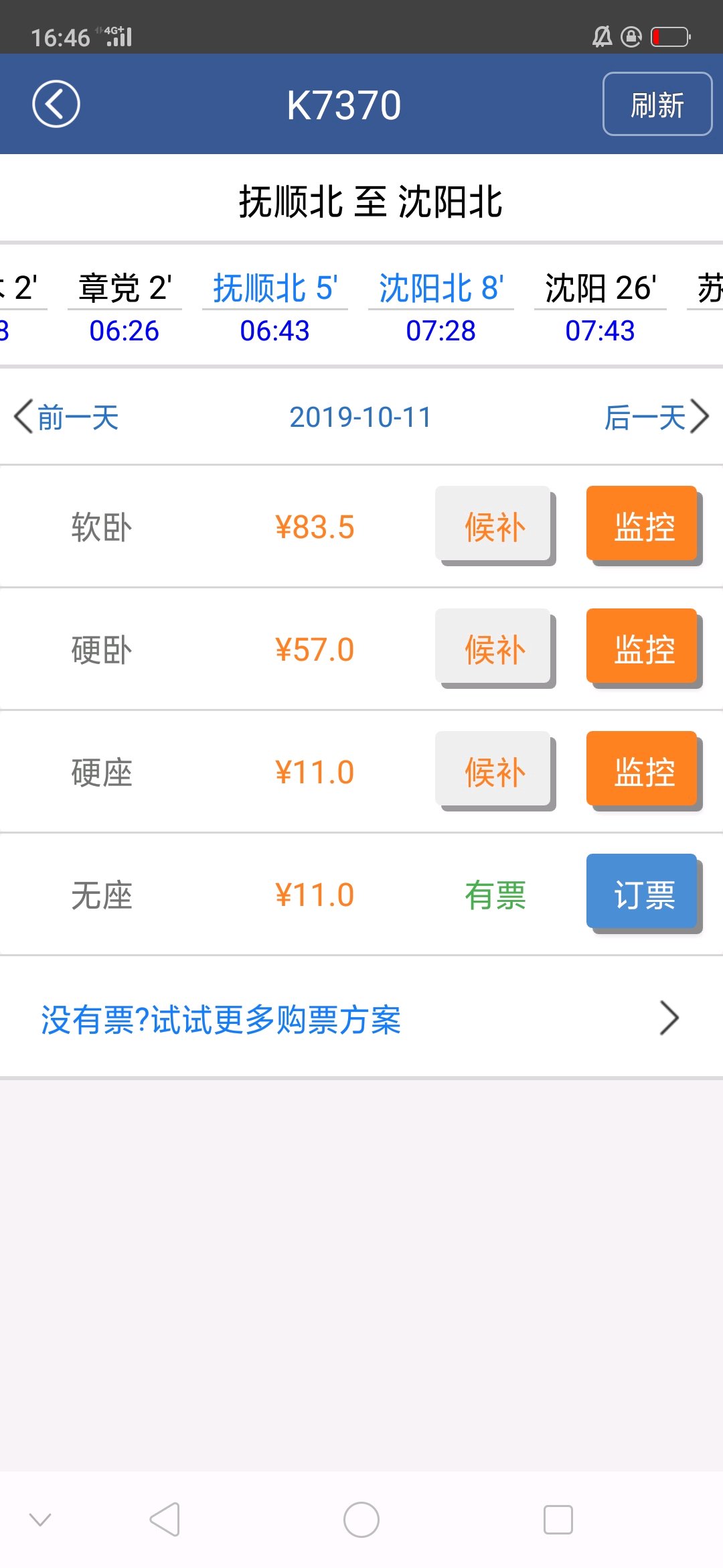同时K7369也经停沈阳北站,走沈吉线,票价11,运行36分钟。K7370/69沈阳站到抚顺北站票价不变,时间不变。傍晚到沈阳北站回抚顺大部分人也不用坐雷锋号了