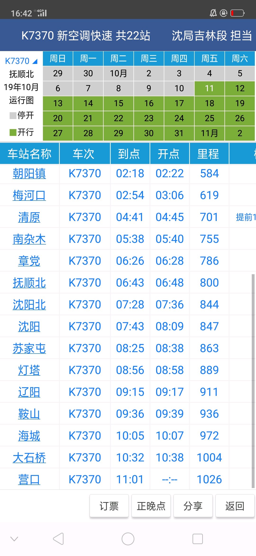 K7370次列车10月11号开始走沈吉线经停沈阳北站