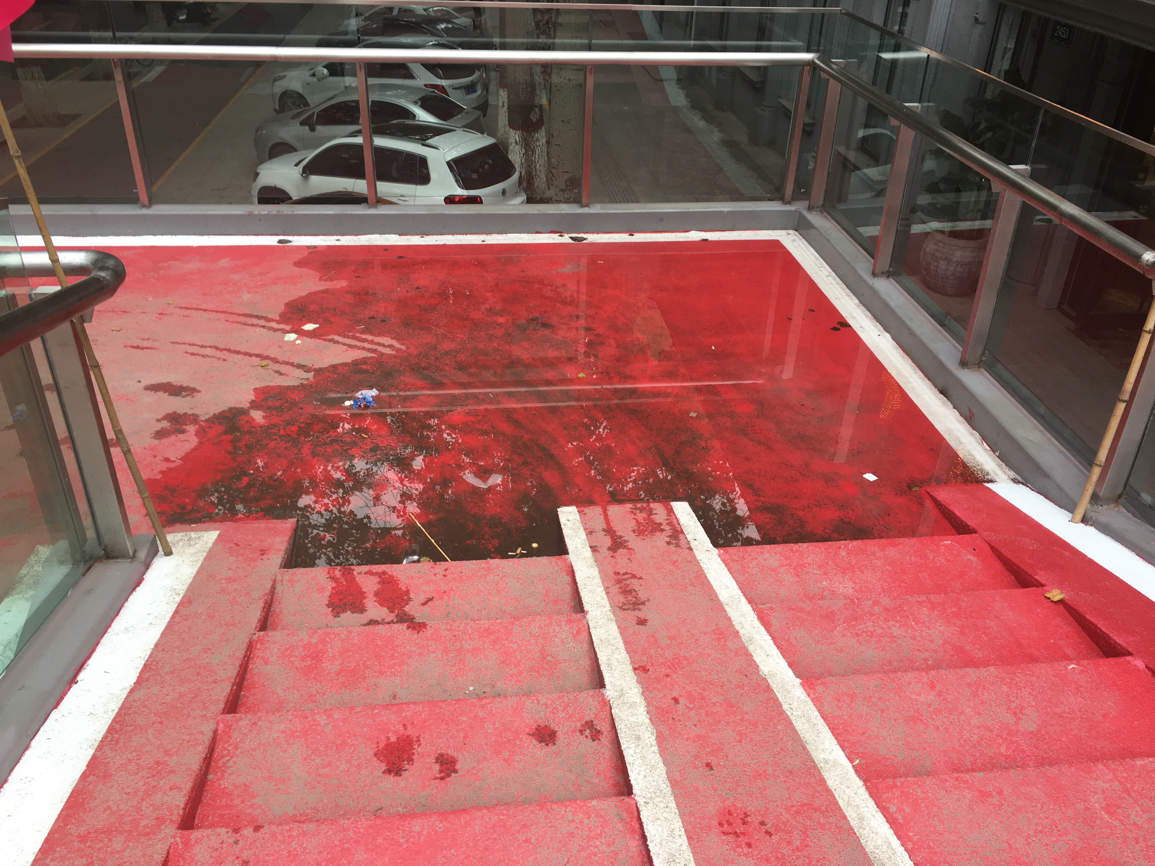 玻璃危险。学校旁边的天桥吧。