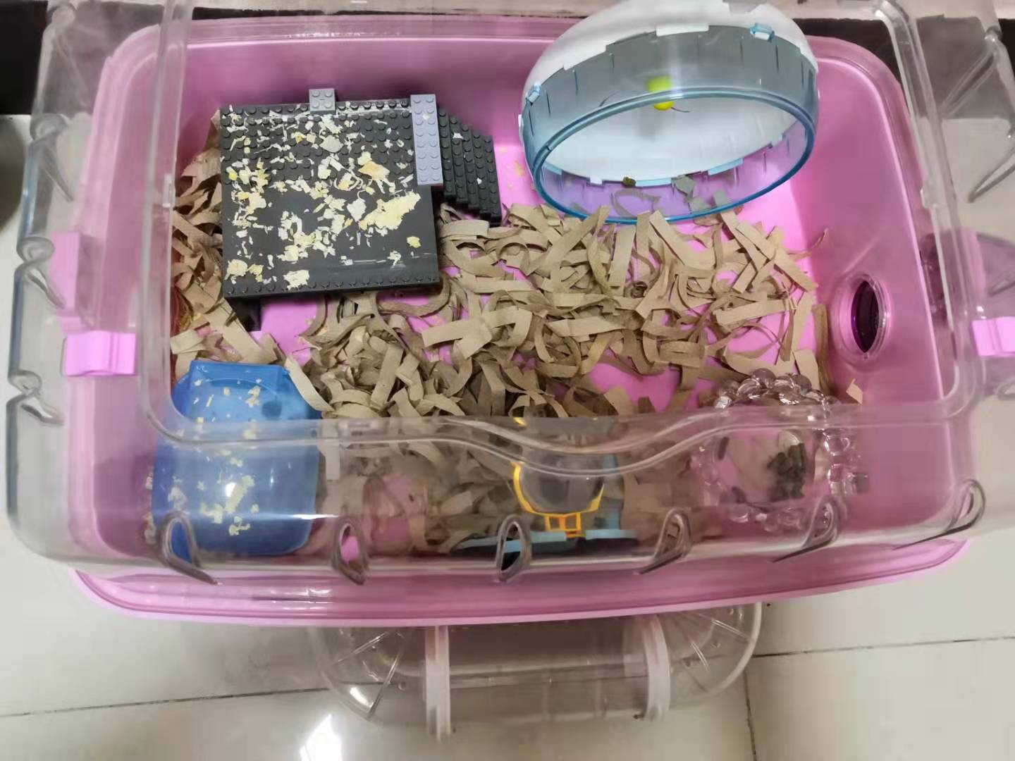 本来我家是不养小动物的,没养过仓鼠,楼下邻居准备回老家了,因此小仓鼠就准备不要了,我家小朋友刚好放学,路过时邻居问他要不要,他没问我立马就要了拿回了家,既然拿回家,又不能退回去,那就没办法养着呗。
