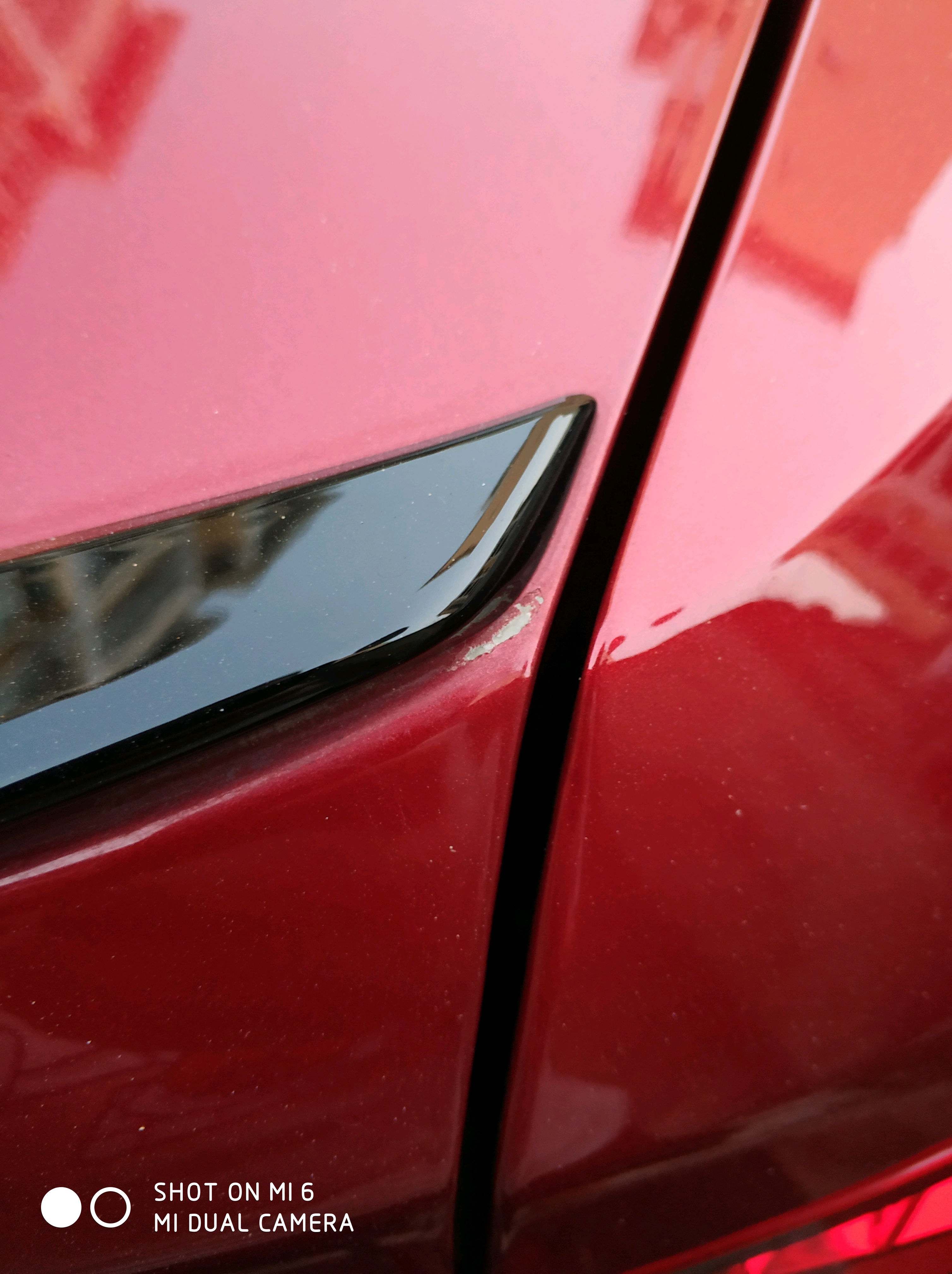 提车1个半月,发现尾翼两侧有两个掉漆的小印子,