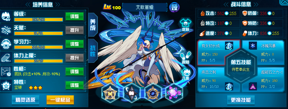应该是圣元素,55攻85体30双防,配置要保证在过紫鸡第三命时能出3招,翻倍了就能过了