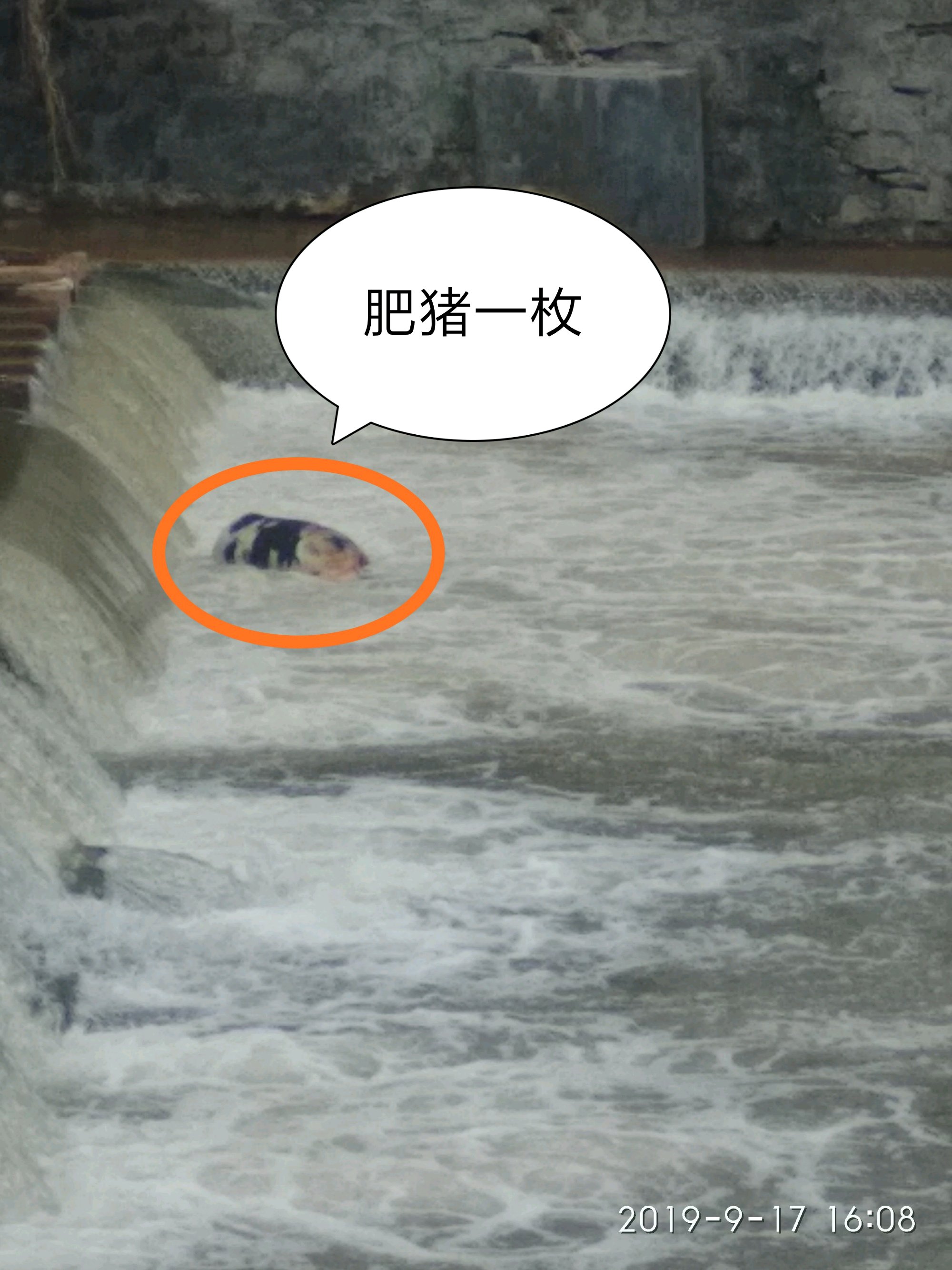 猪肉长的厉害,今天却在孝妇河里颜北路段附近看到一只大肥猪,早