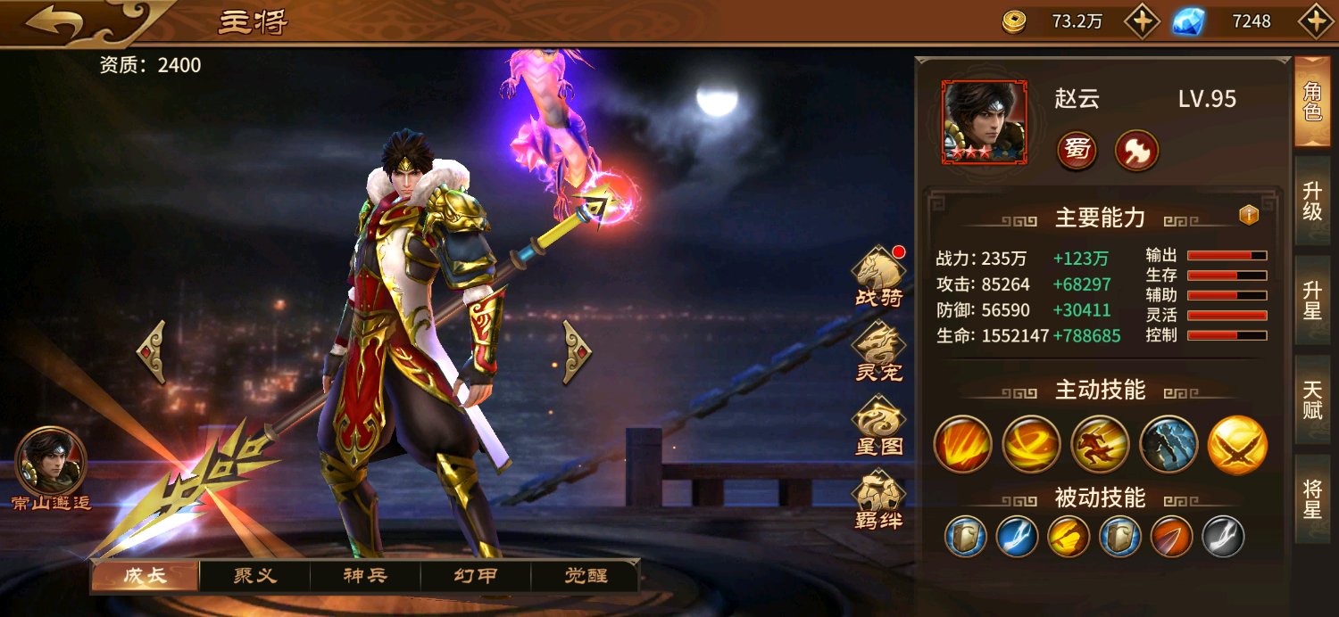 更正,张辽三个月开觉醒,四个月觉醒完成,以防有人喷我。再一个我的赵云走了一点点弯路,不是最佳成长的姿势,大家别介意,我也是第一次玩。
