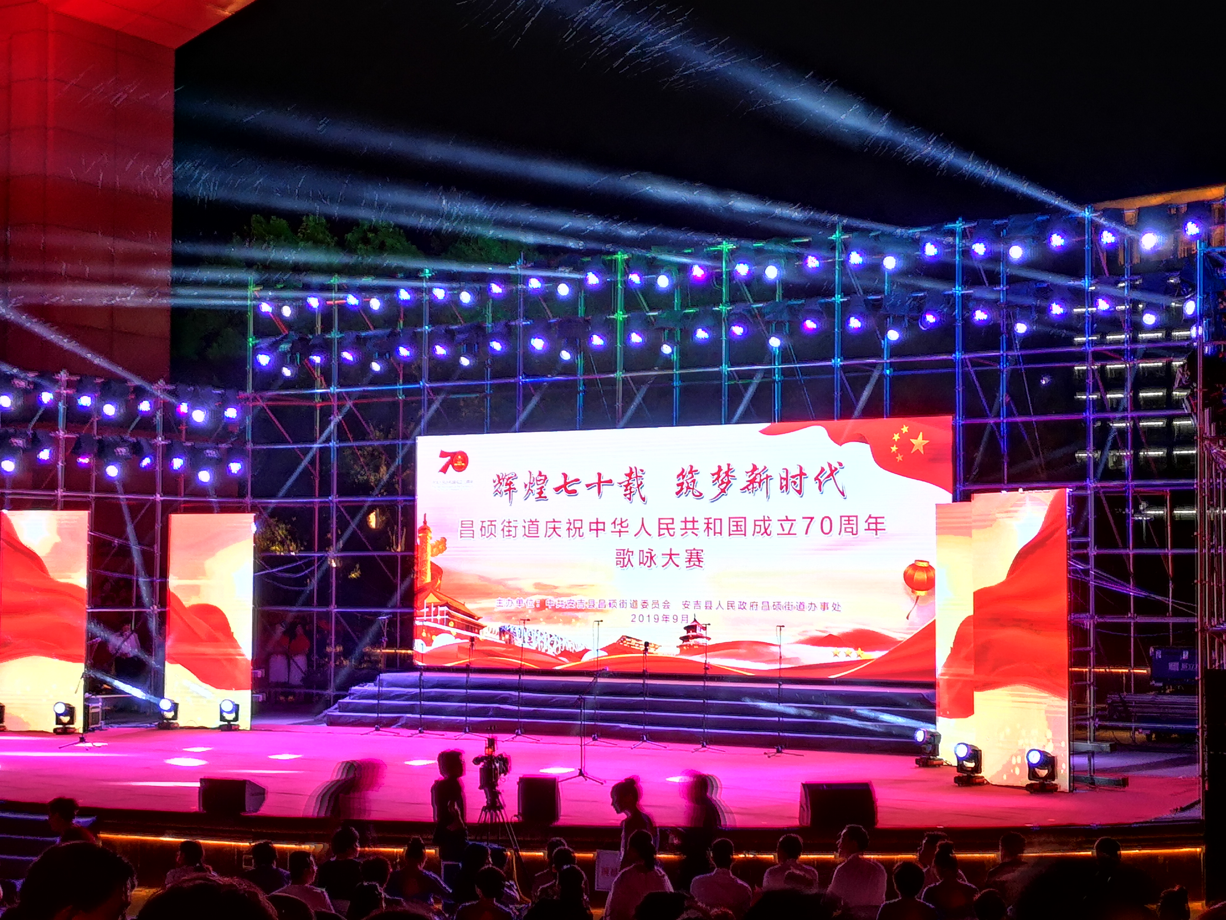 国庆即将来临,昌硕街道举办了一场歌唱大赛。看的人也挺多的。社
