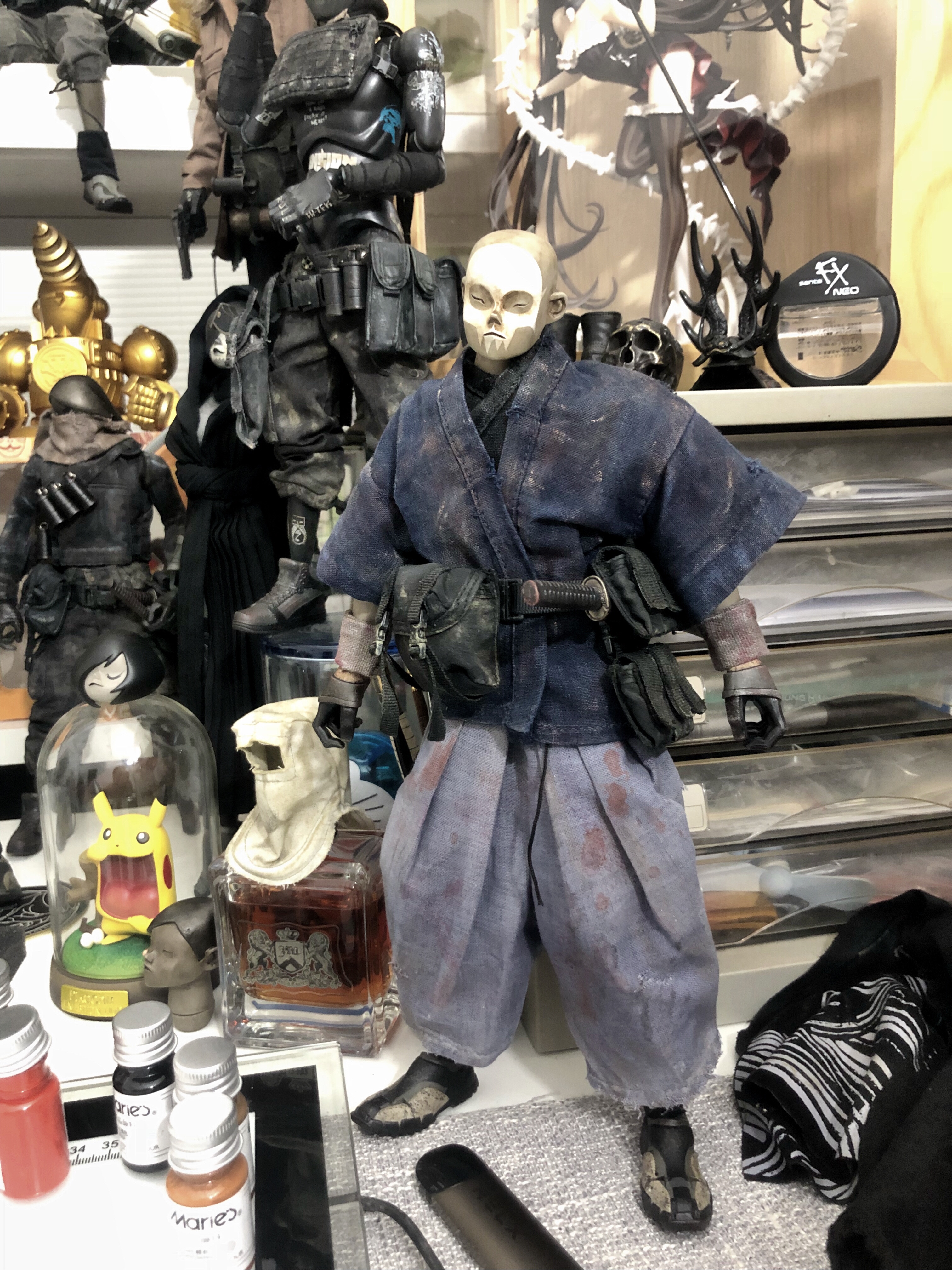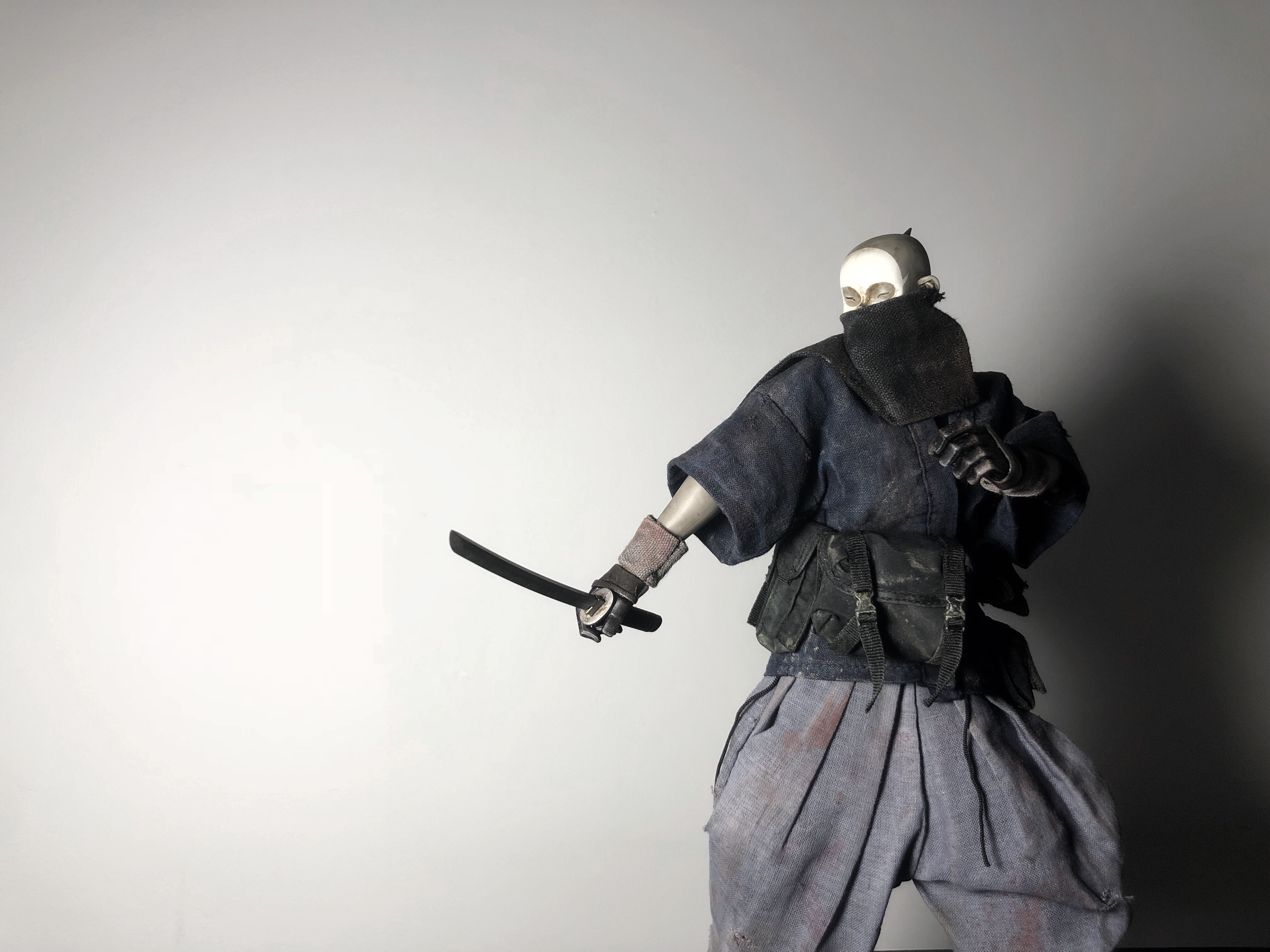 3atoys死面将军头自D 借鉴贴吧大佬的照片diy一只浪人 为了和大佬的浪人有区别自己做了个口水兜、做旧多加了些血迹和收紧了一下裤腿 看起来也有忍者味