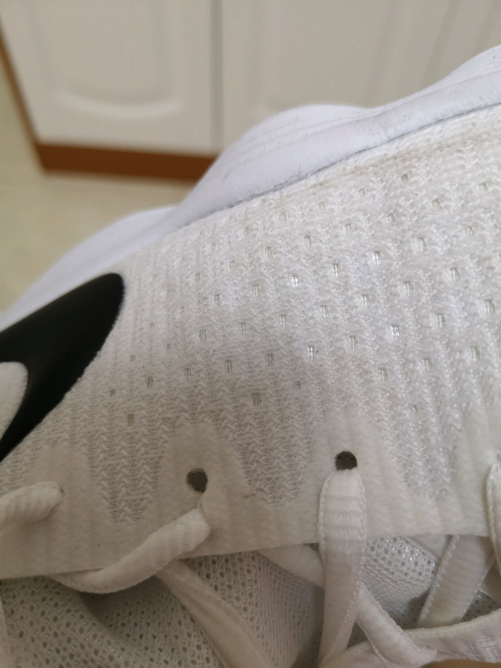 自穿可以缝缝补补呗,或者直接跳了这个孔,直接换一下系鞋带的方式