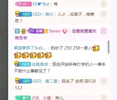 你野猪,远方公会,被三大公会打压要死不活。然后看250被三大公会打压没倒,看250人气高,然后自己靠近250。别说在帮250,也是在帮你自己,二营长,帮你顶人气,汪汪汪也是喂猪了???现在翻脸。有本事别讲250新闻。野猪家大哥八杂,社会猪王,seven等人多次骂二营长,骂颜色主播,组织人员渗透518512粉丝团体挖消费者。别说兔丝宇,你给她带来啥改变了??野猪自己直播间都是二营长谈何甩人给颜色兔丝宇,不可笑?
