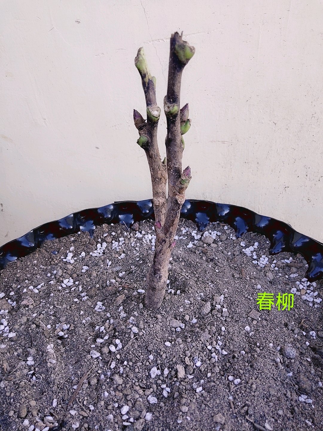 春柳这个品种自身根很少的,花芽为红色,芽点比较稀少,成花率极高,花开比较大